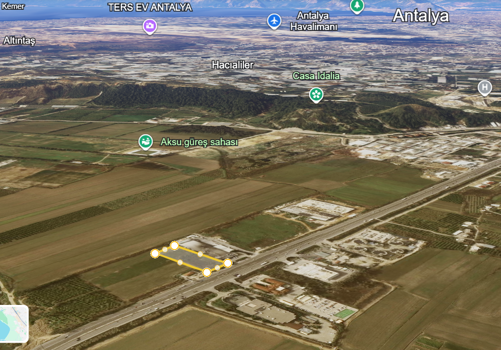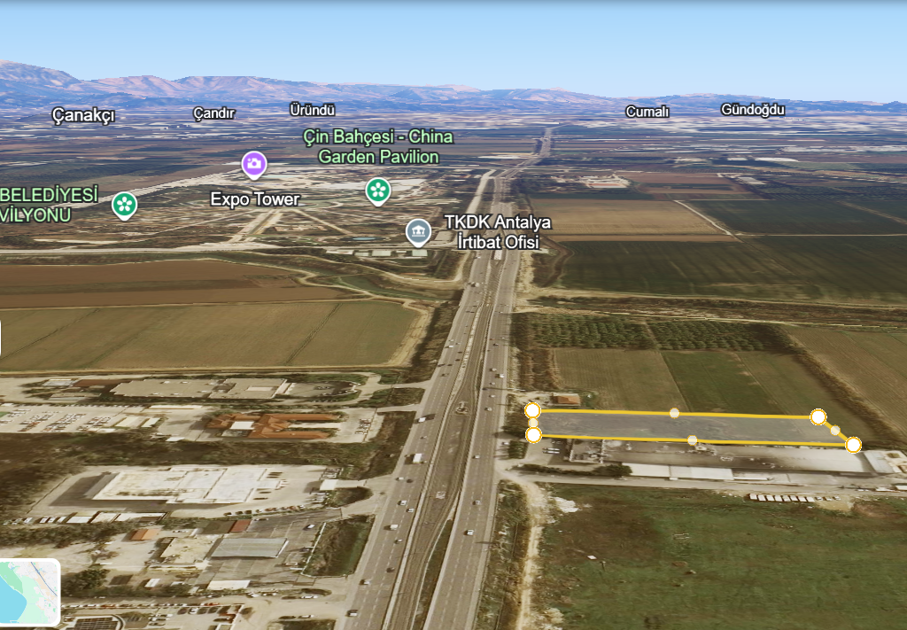 تقع هذه الأرض التجارية في أنطاليا، منطقة أكسو، حي تشالكايا، رقم القطعة 15837 / 7. تتميز بموقع مباشر على طريق D400 مقابل إكسبو.