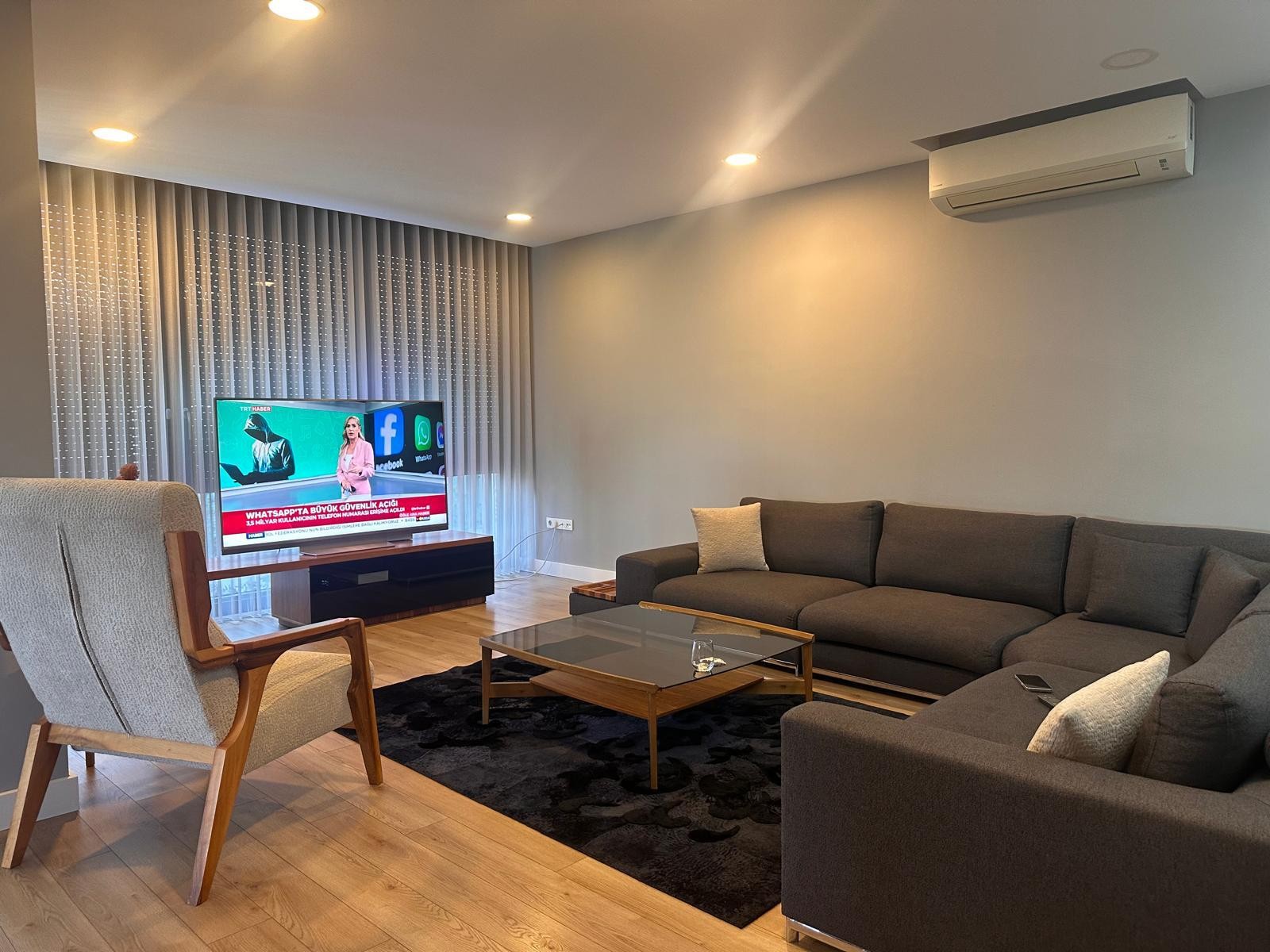 يتوفر دوبلكس 4+1 بمساحة 235 مترًا مربعًا، مفروش بالكامل، ضمن مجمع سكني في حي غوزيلوبا بمنطقة لارا. يضم العقار مطبخًا أمريكيًا مفتوحًا مزودًا بأجهزة مطبخ مدمجة، إضافة إلى تدفئة أرضية، مكيف هواء، وبنية غاز طبيعي.