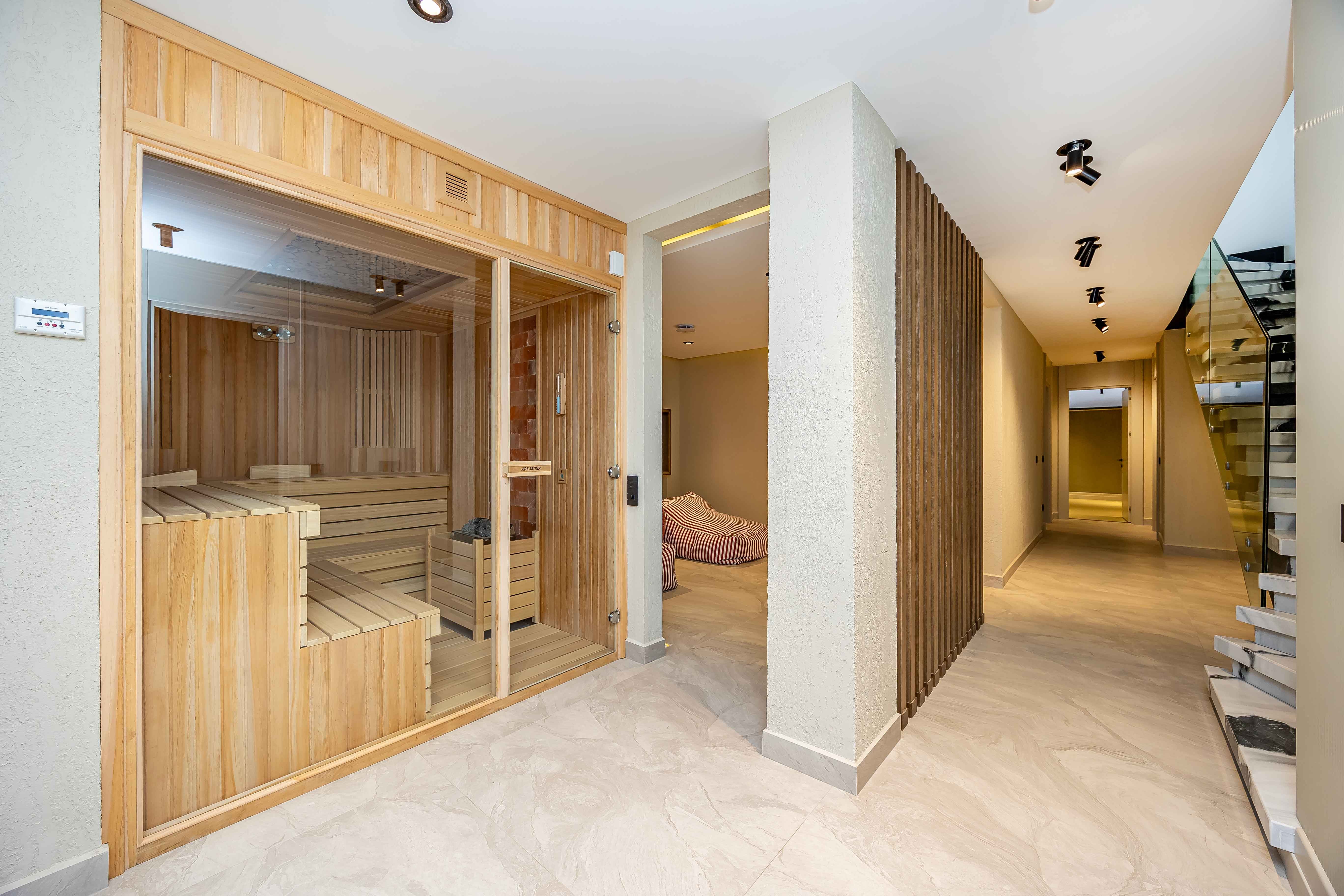 • Kellergeschoss: Fitnessbereich, Hamam, Sauna, Massageraum, Hobbyraum, Abstellraum, WC und Dusche