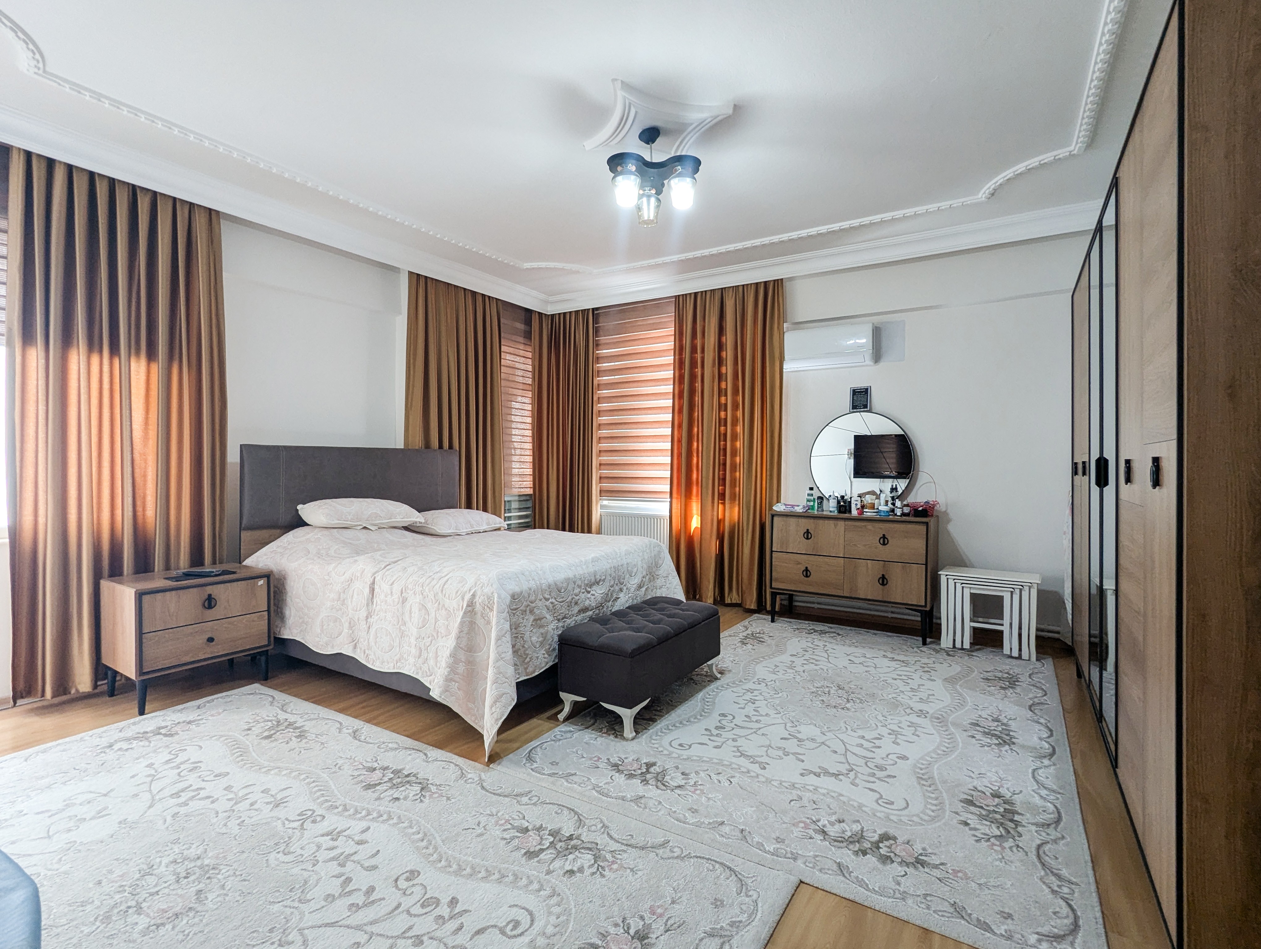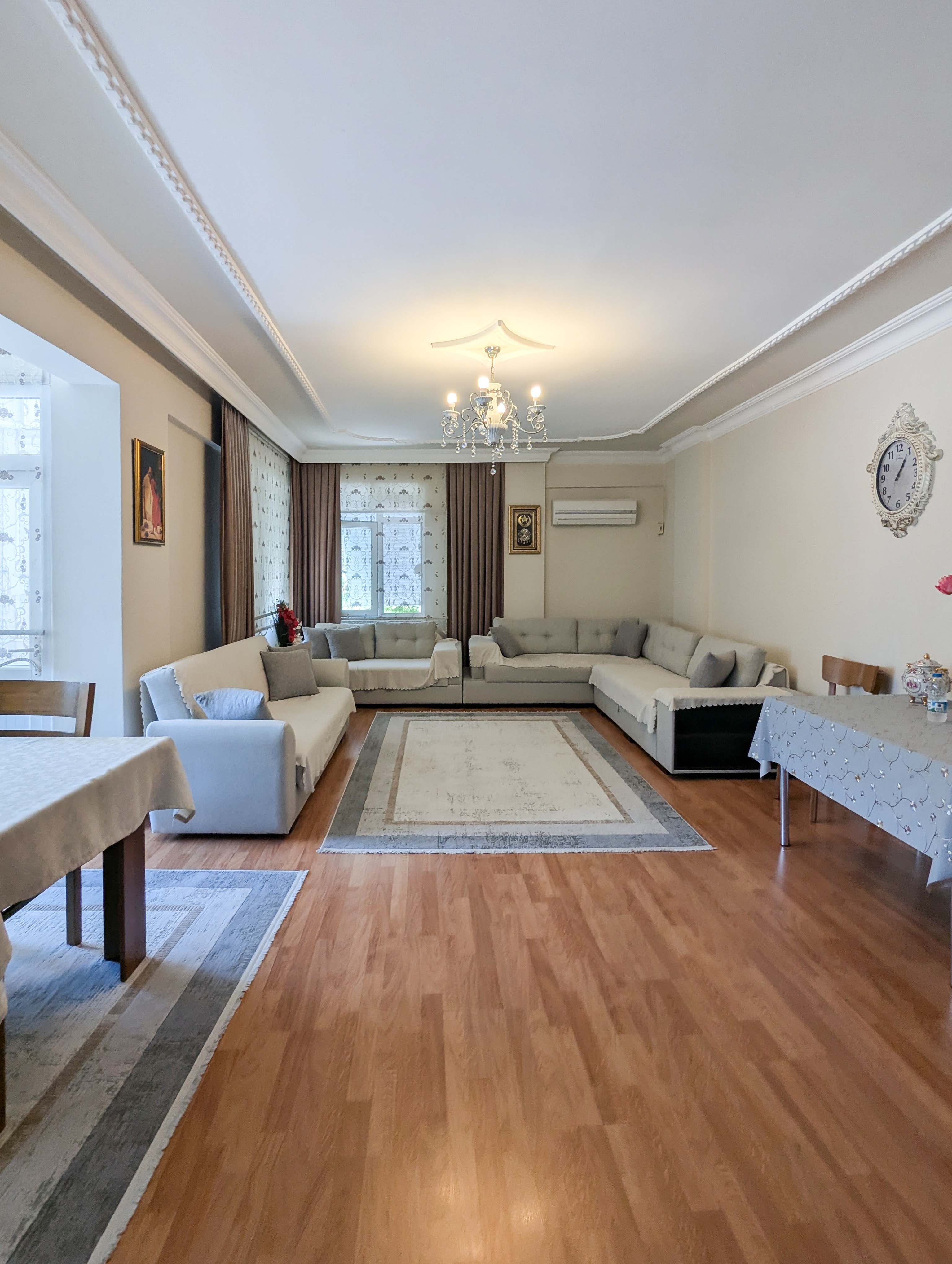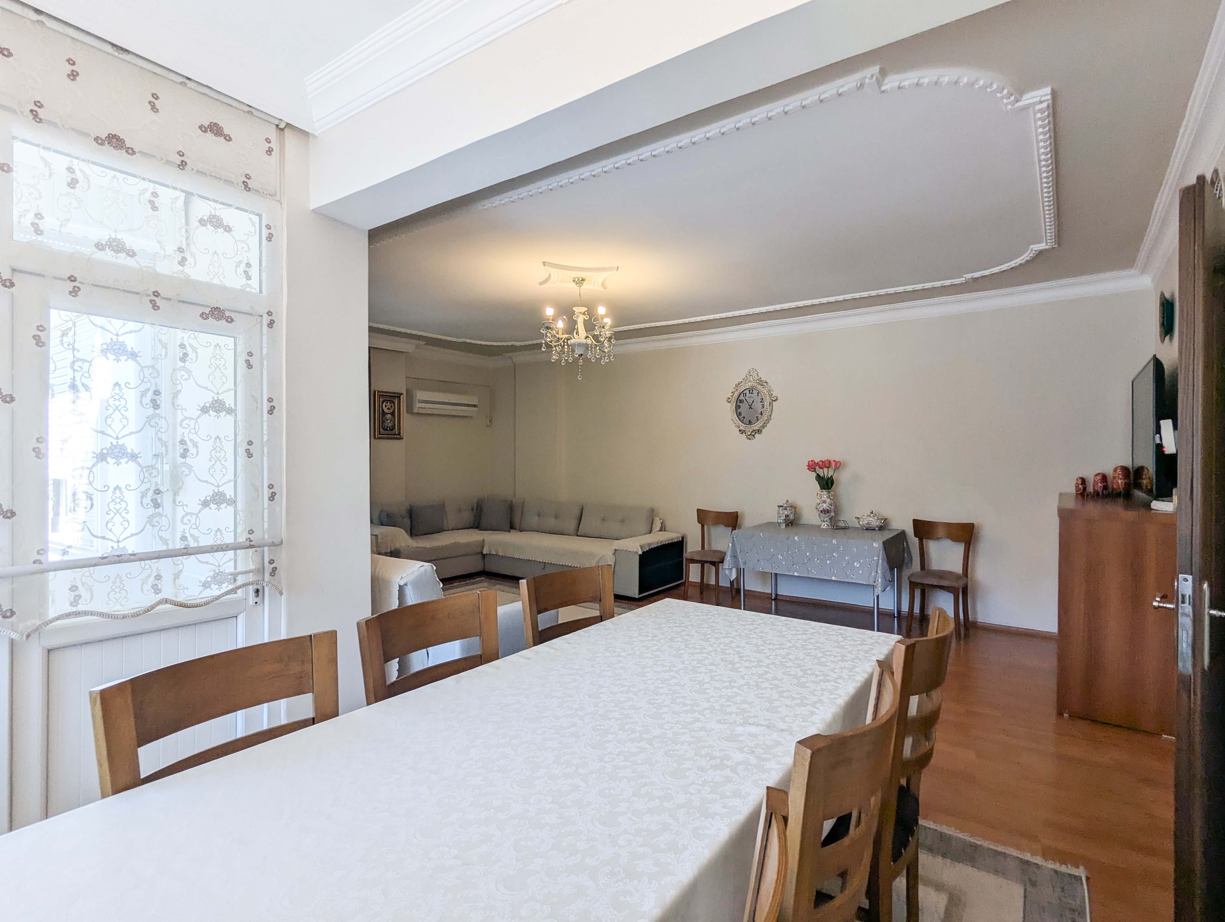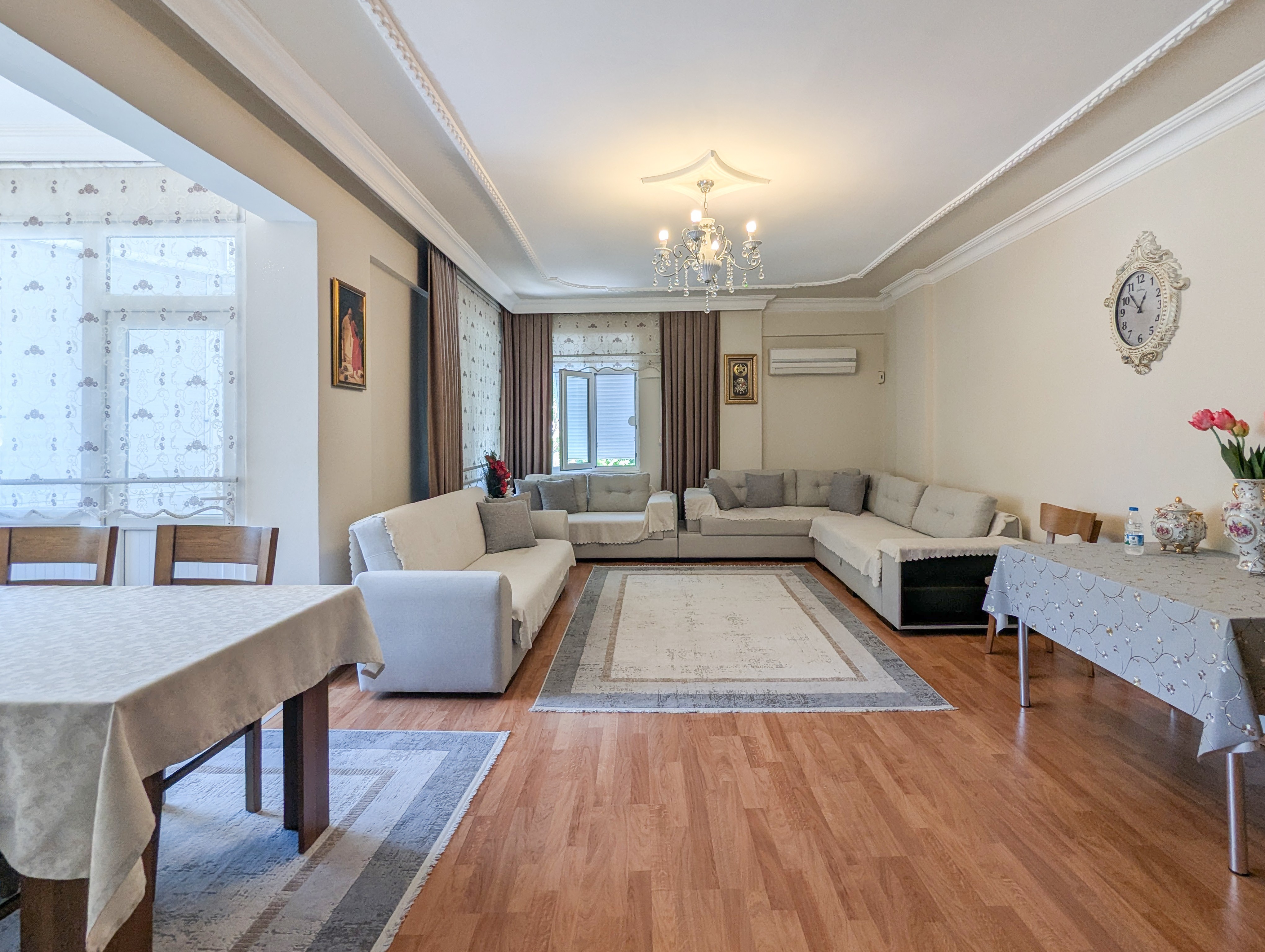 This 3+1 apartment is located in Güzeloba, Lara area of Antalya. With its single-floor layout and spacious interior, it is suitable for family living and long-term investment.