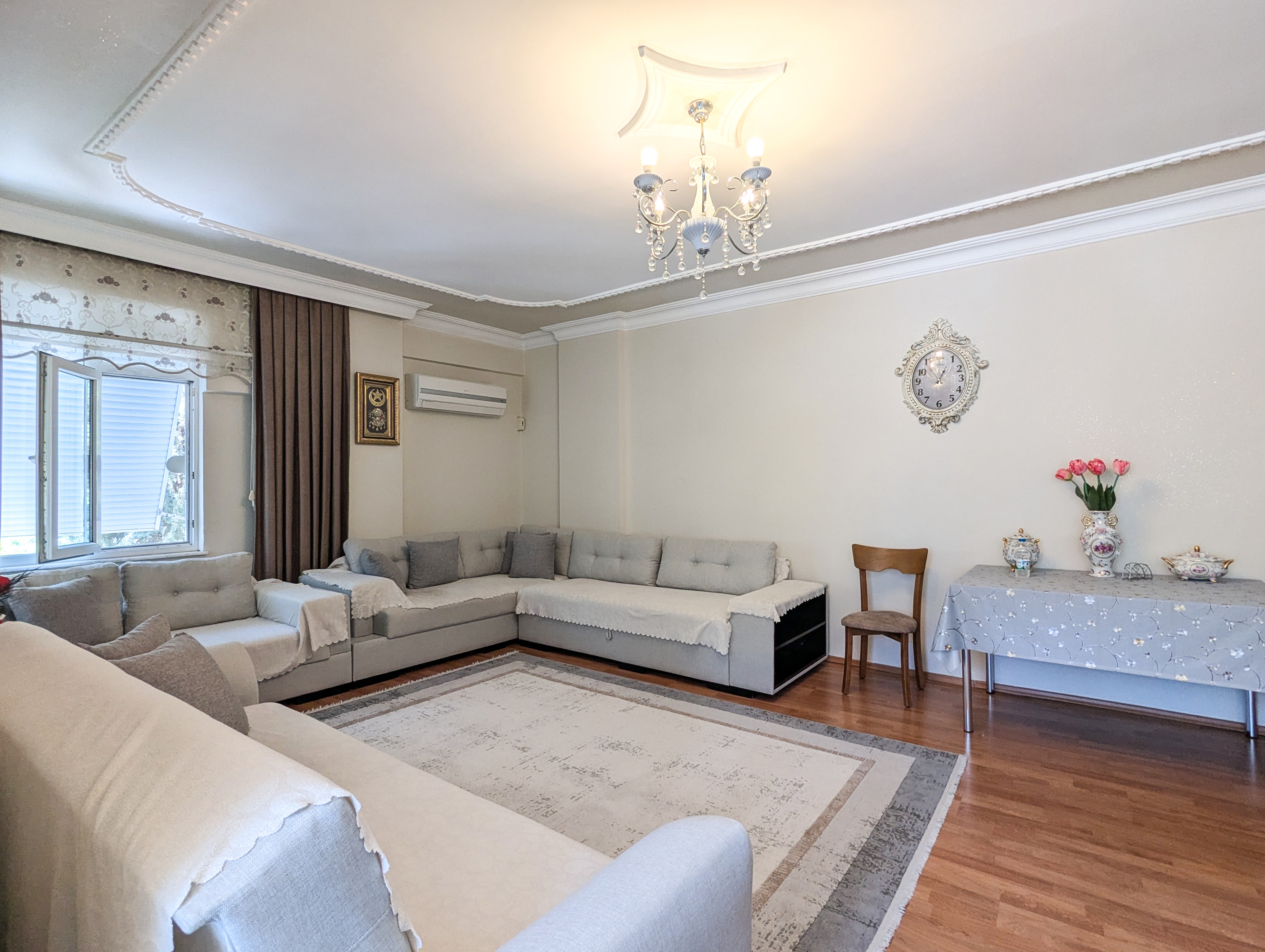 The apartment is within walking distance to the sea and situated in a well-established residential area of Güzeloba, Lara.