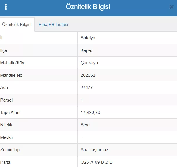 • Parsel no : 1
