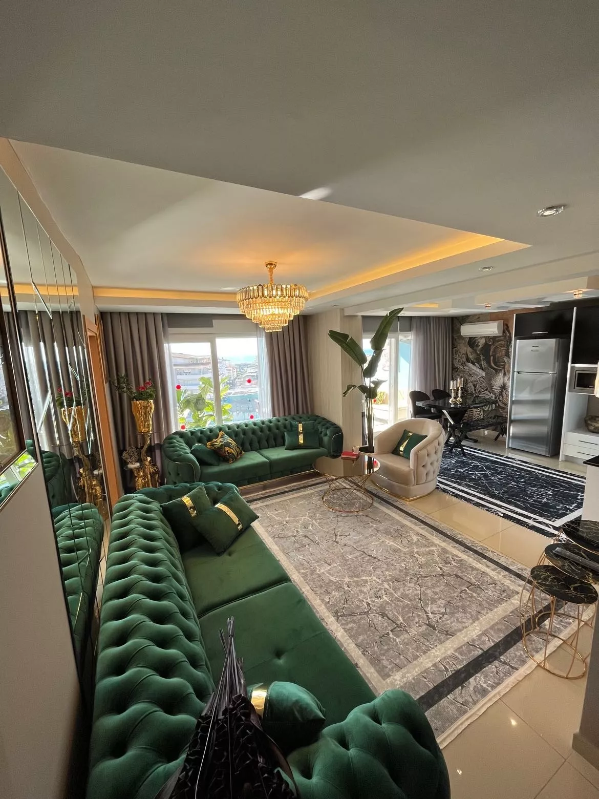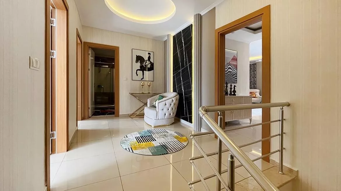 Alanya’nın popüler bölgelerinden Cikcilli’de yer alan bu eşyalı 4+1 dubleks daire, konfor ve lüksü bir arada sunuyor. Modern yaşamın ihtiyaçlarına cevap veren detaylarıyla dikkat çeken daire, 220 m² geniş yaşam alanı, deniz, kale ve şehir manzarası ile öne çıkıyor. 9. katta yer alan bu daire, güney batı ve doğu cepheye sahip, gün boyu güneş ışığından maksimum düzeyde yararlanma fırsatı sunuyor.