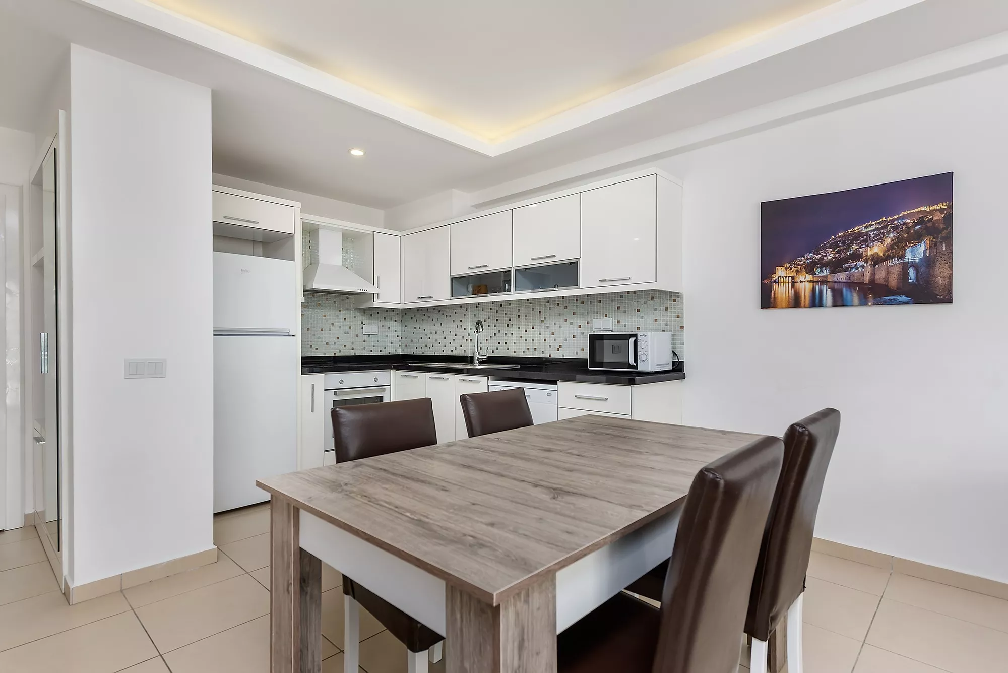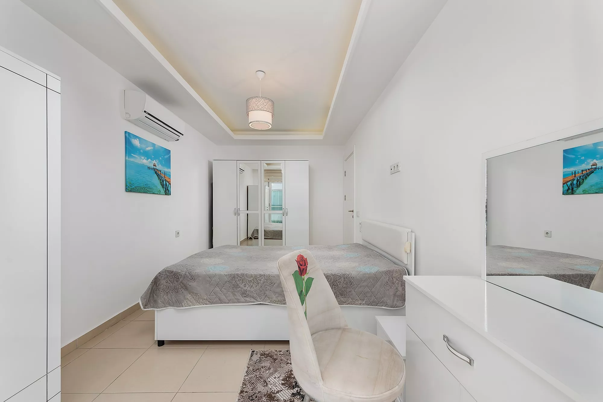 Bu 1+1 daire, yüksek kalite mobilyalar ve beyaz eşyalar ile tamamen donatılmış şekilde teslim ediliyor. Dairenin modern tasarımı, konforu ve şıklığı bir arada sunuyor. Ayrıca, balkonunuzdan deniz manzarasının tadını çıkarabilir, Alanya’nın muhteşem gün batımıyla keyifli akşamlar geçirebilirsiniz.