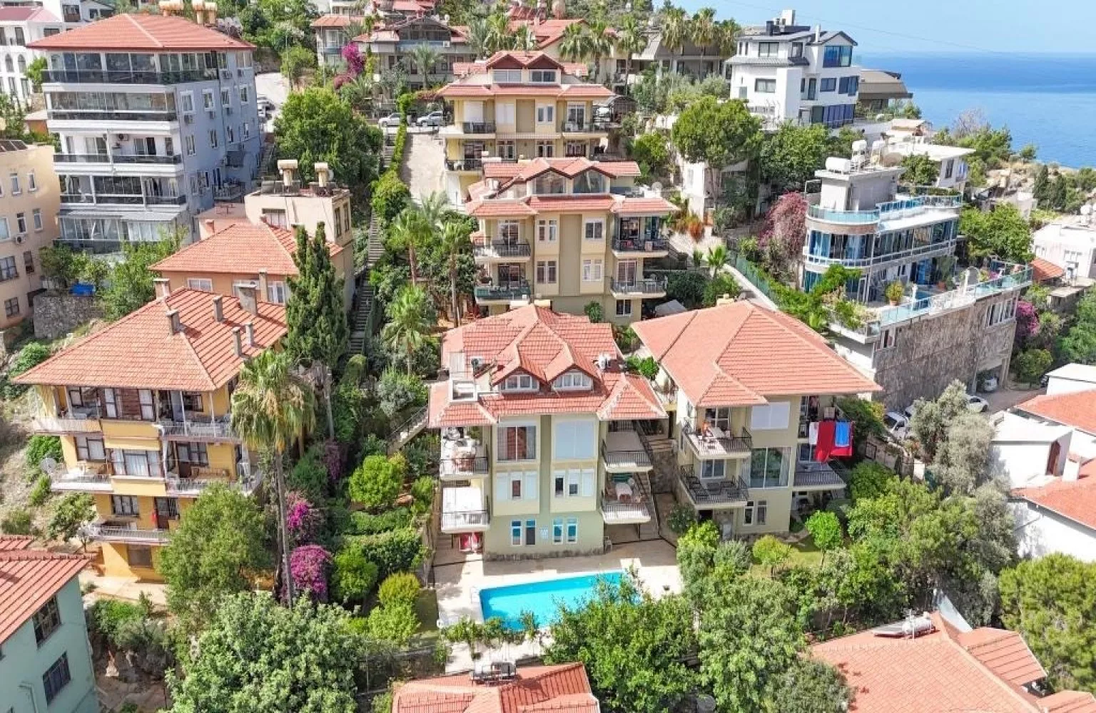 Site içerisinde havuz, güvenlik kamerası sistemi ve profesyonel site yönetim şirketi bulunmaktadır. Konum olarak, plaja sadece 3,5 km, en yakın hastaneye 4 km, alışveriş merkezine 5 km ve Gazipaşa Havalimanı'na 43 km mesafededir.