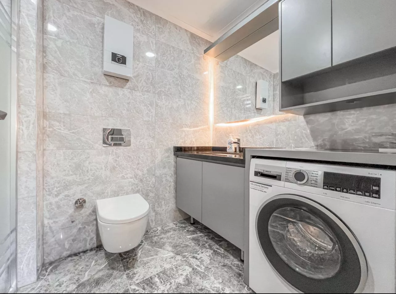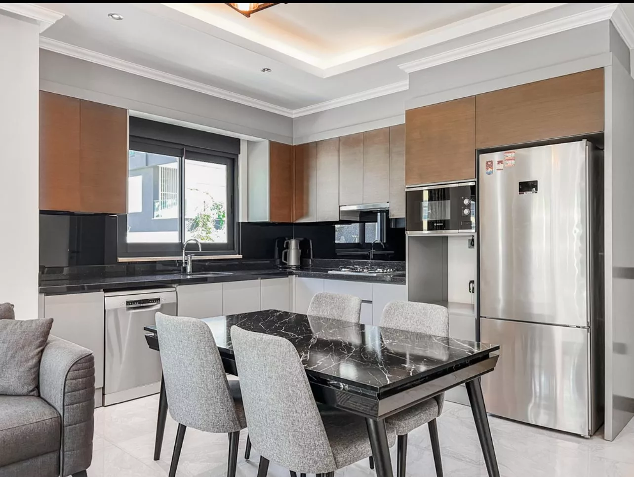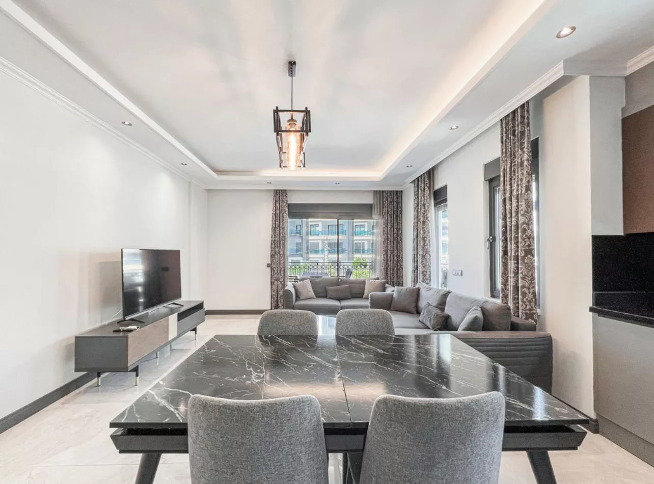 Günlük yaşam ihtiyaçlarınıza yürüme mesafesinde olan bu daire, kaliteli mobilyaları ve geniş balkonu ile konforlu bir yaşam sunar.