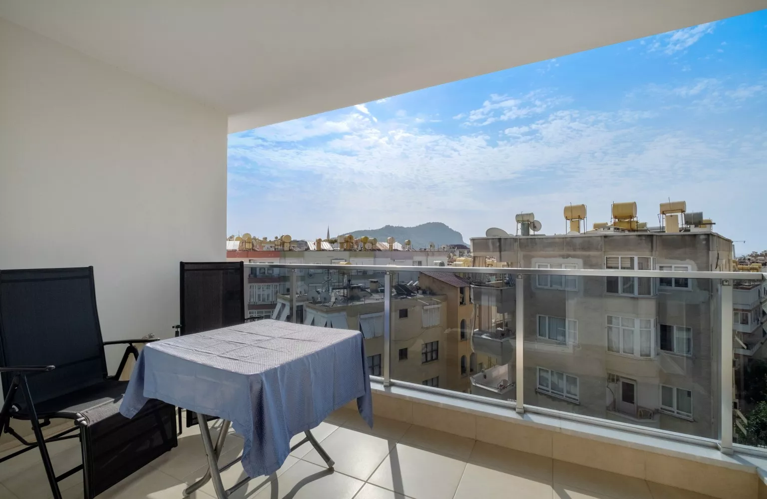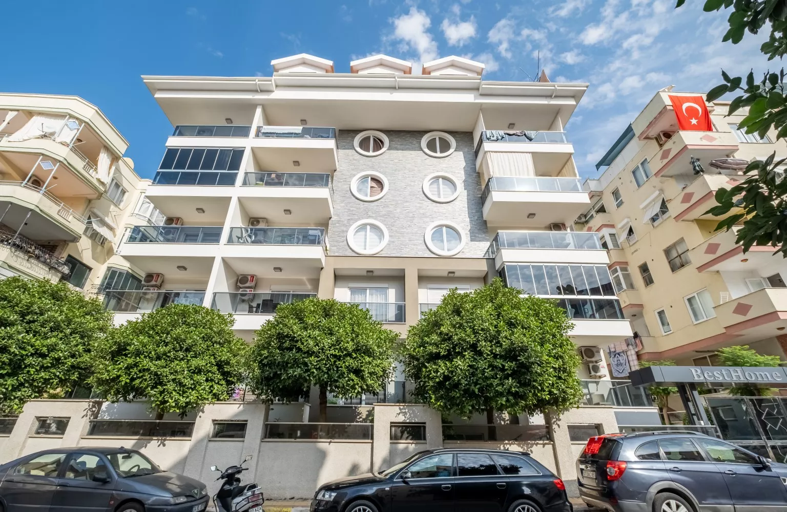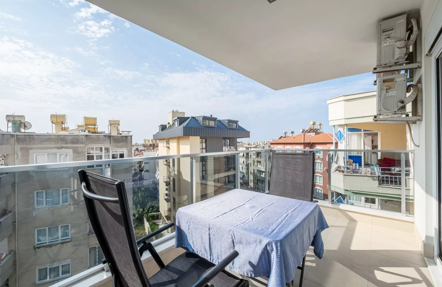 Bu daire, tam donanımlı ve modern mobilyalarla döşenmiş olup, panoramik şehir manzarasına sahip 5. katta yer almaktadır. Geniş balkonu, şehrin enerjisini ve güzelliklerini evinize taşırken, plaja sadece 550 metre mesafede olması denizin keyfini doyasıya çıkarmanızı sağlar. Ayrıca, havalimanına 45 km mesafede olması seyahatlerinizi kolaylaştırır.
