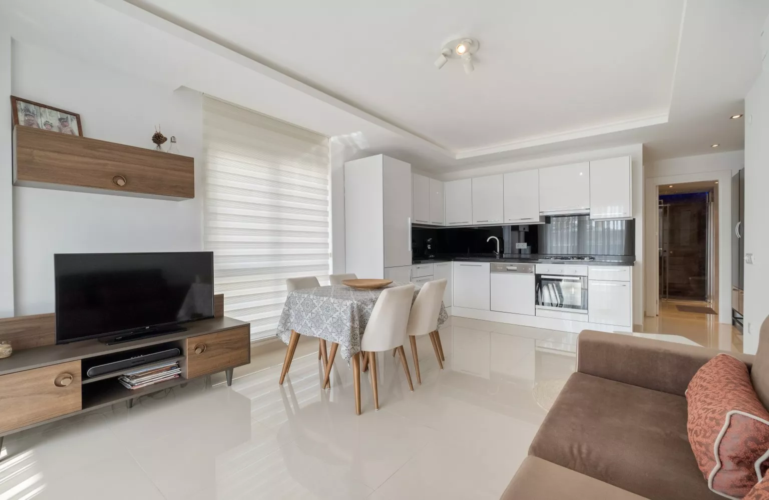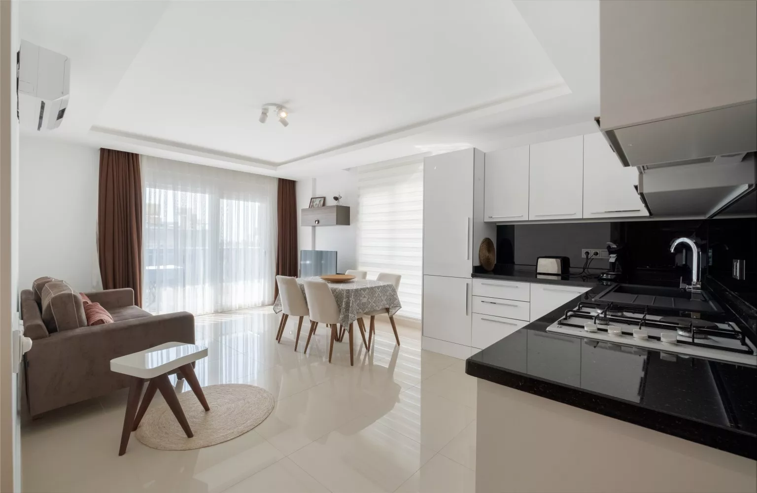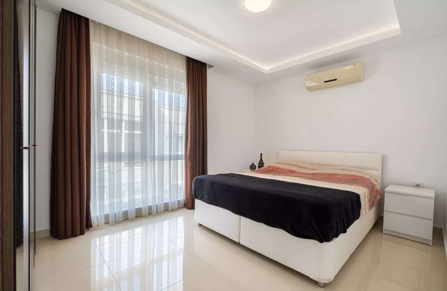 Bu daire, tam donanımlı ve modern mobilyalarla döşenmiş olup, panoramik şehir manzarasına sahip 5. katta yer almaktadır. Geniş balkonu, şehrin enerjisini ve güzelliklerini evinize taşırken, plaja sadece 550 metre mesafede olması denizin keyfini doyasıya çıkarmanızı sağlar. Ayrıca, havalimanına 45 km mesafede olması seyahatlerinizi kolaylaştırır.