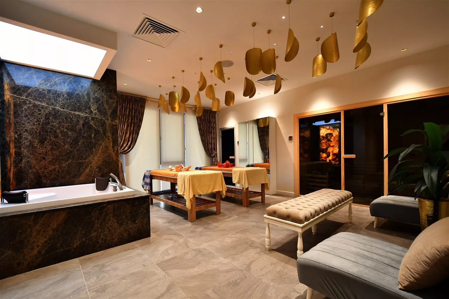 - Spa ve Dinlenme Alanları: Hamam, sauna, masaj odası ve jakuzi ile rahatlayın.