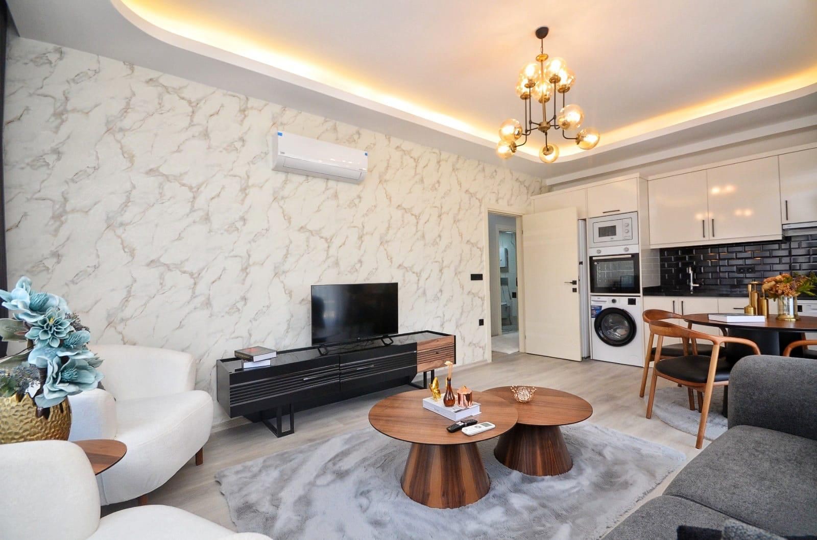 Şık ve fonksiyonel iç tasarımıyla öne çıkan bu daireler, yüksek kaliteli malzeme ve işçilikle inşa edilmiştir. Eşyasız veya isteğe bağlı olarak eşyalı seçenekler mevcuttur. Tapusu hazır olan daireler, hemen taşınma imkânı sunar ve Türk vatandaşlığına uygunluk kriterlerini karşılar.