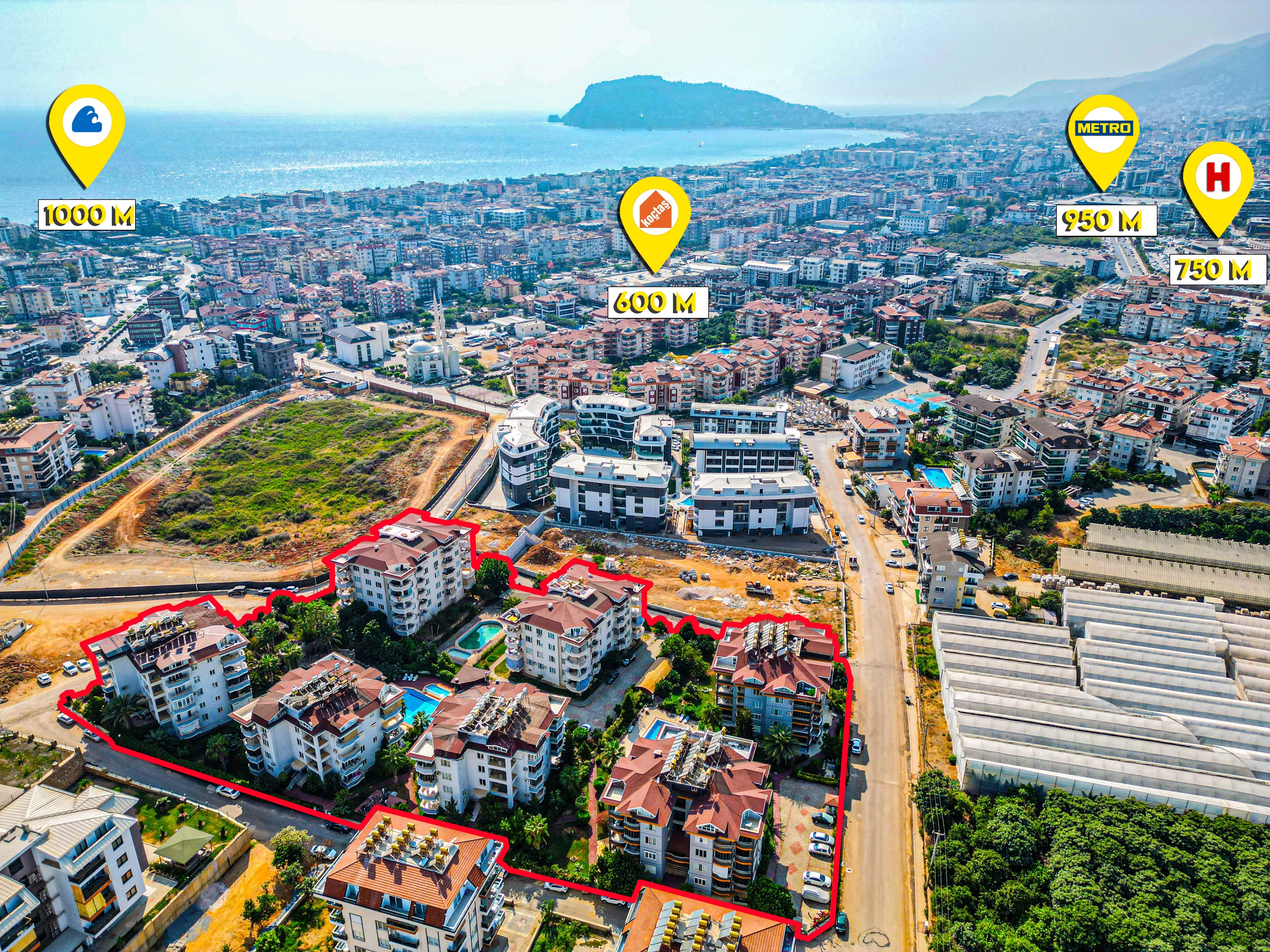 Bu değerli mülk, Alanya Oba'nın seçkin lokasyonunda yer almakta olup, denize sadece 1,1 km mesafededir. Ulaşım kolaylığı sağlayan konumu, Antalya havalimanına 118 km, Alanya Gazipaşa havalimanına ise 34 km uzaklıkta olmasıyla dikkat çekmektedir. Hem yerli hem de yabancı yatırımcılar için cazip bir seçenek olan daire, stratejik konumu sayesinde bölgedeki artan değer ve talep potansiyelini yansıtmaktadır.
