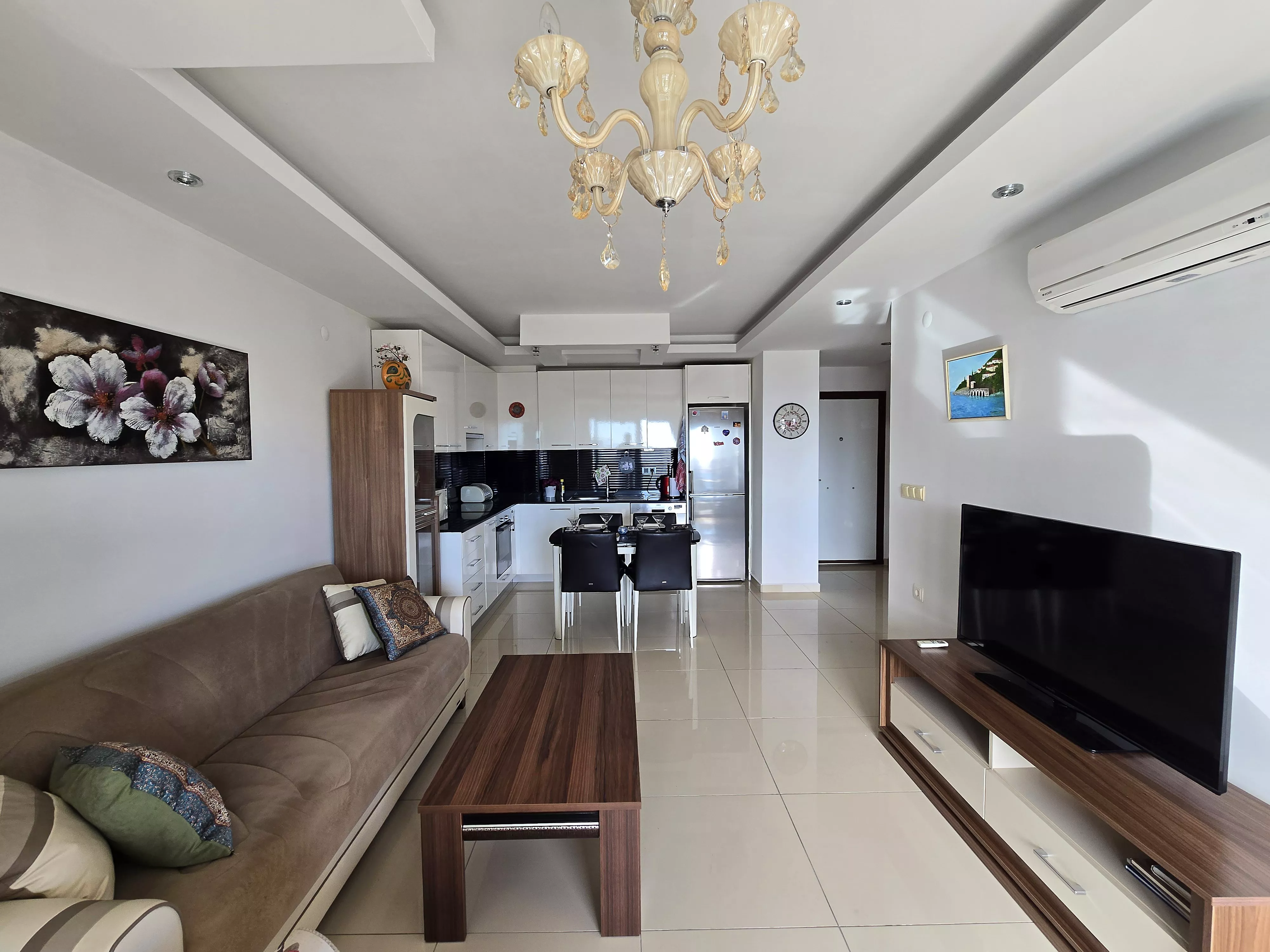 Bu daire, sahile yürüyüş mesafesinde olup, aynı zamanda bölgedeki restoranlar, kafeler ve marketlere kolay erişim sağlıyor.