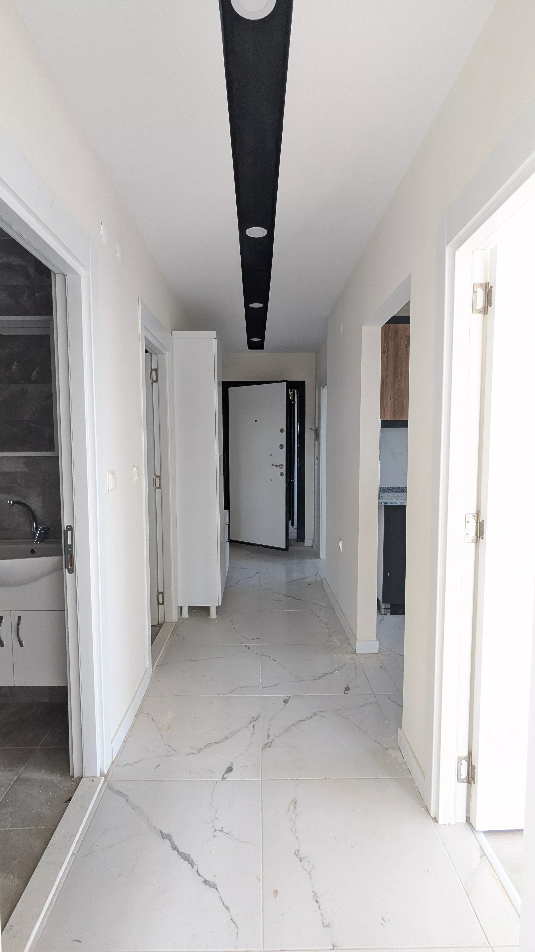 Antalya'nın gelişen bölgesinde yer alan bu lüks sıfır daireler, modern yaşamın tüm konforunu sizlere sunuyor. 2 katlı binanın 1. kat ara katında bulunan bu 2+1 daire, 110 m² brüt alana sahiptir ve her iki tarafı geniş balkonlarla çevrilidir. Daire, doğu, batı ve kuzeydoğu cephelerine sahip olup, bol gün ışığı alır ve mükemmel bir hava akışına sahiptir.