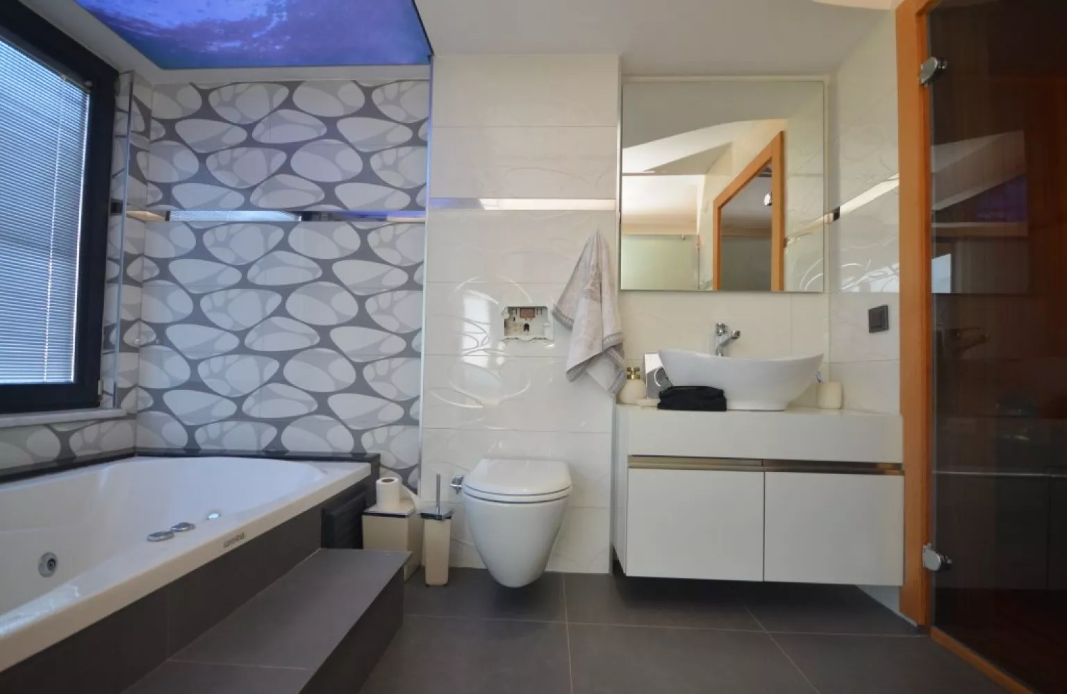 Bu dubleks dairede, geniş bahçe alanı ile açık havada keyifli zaman geçirebilir, doğayla iç içe bir yaşam sürebilirsiniz. Dairenin içerisinde jakuzzi ve sauna gibi ekstra lüks detaylar da bulunuyor. Hem iç hem dış mekanlarda rahatlayabileceğiniz bu alanlar, yaşam kalitenizi artıracak.