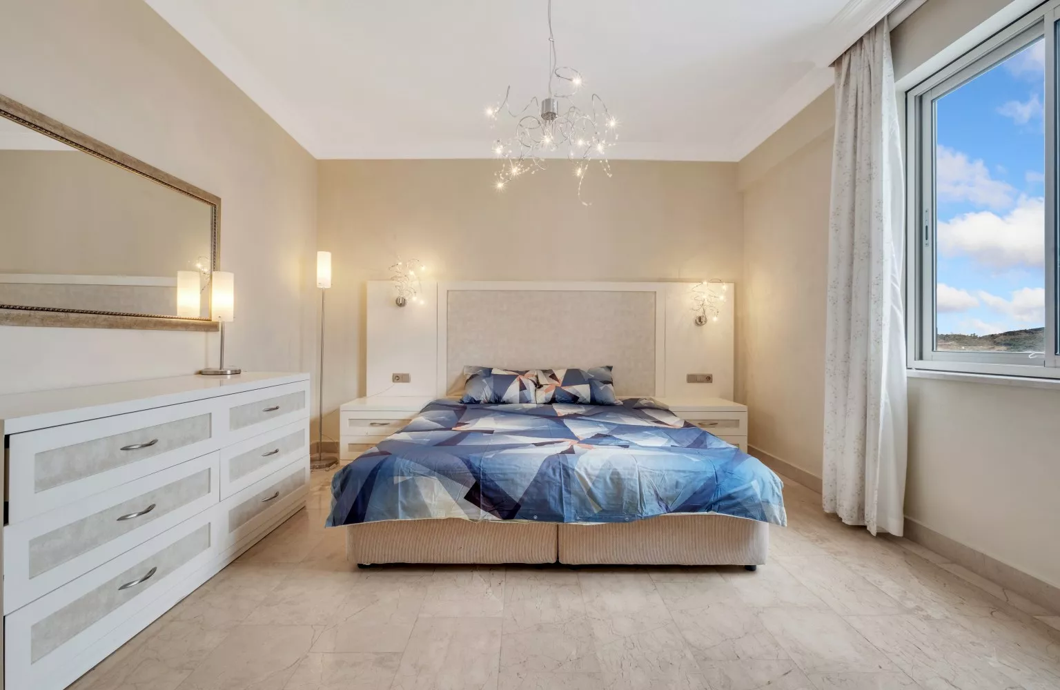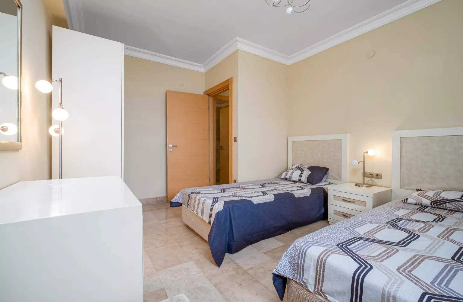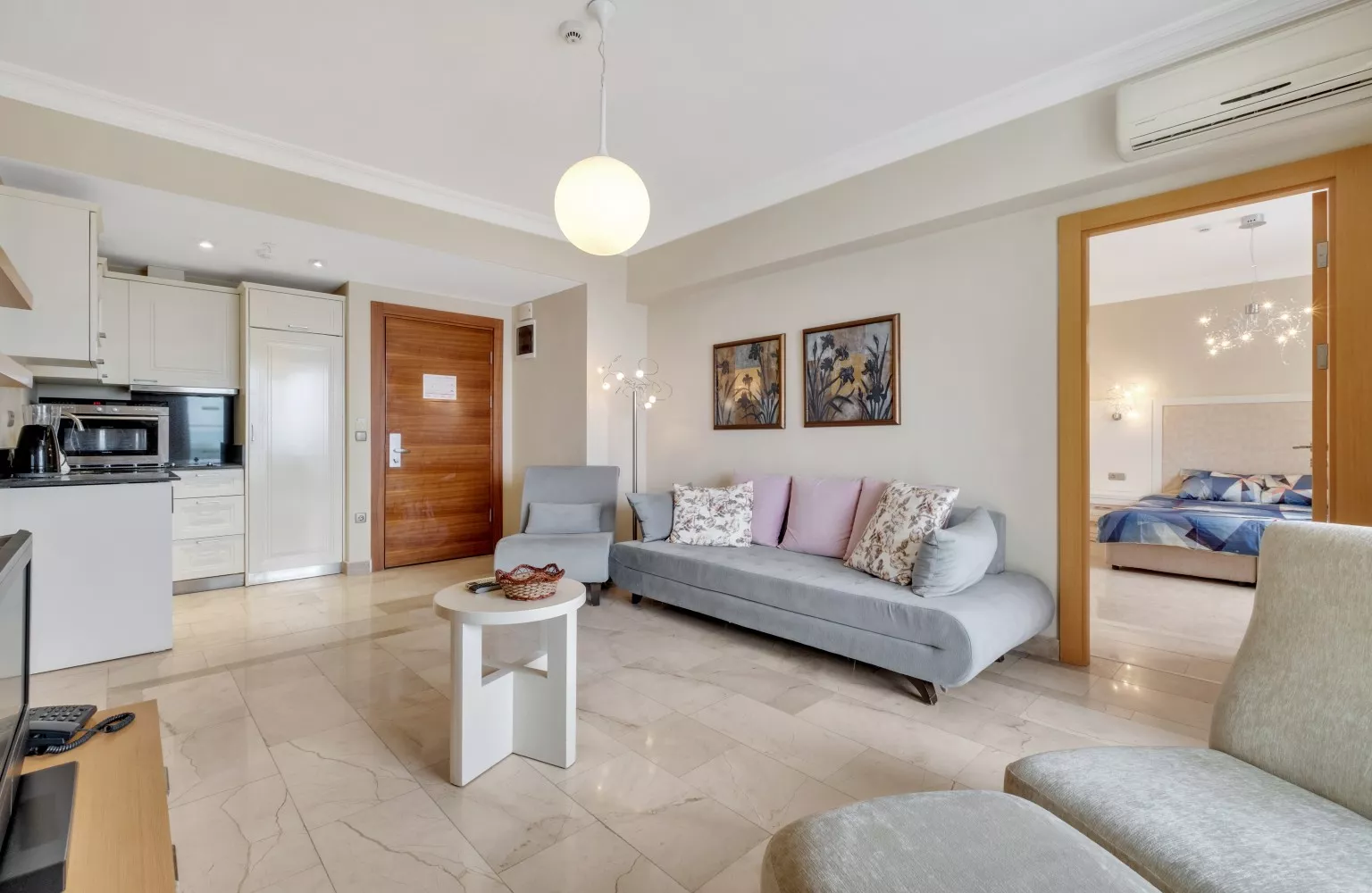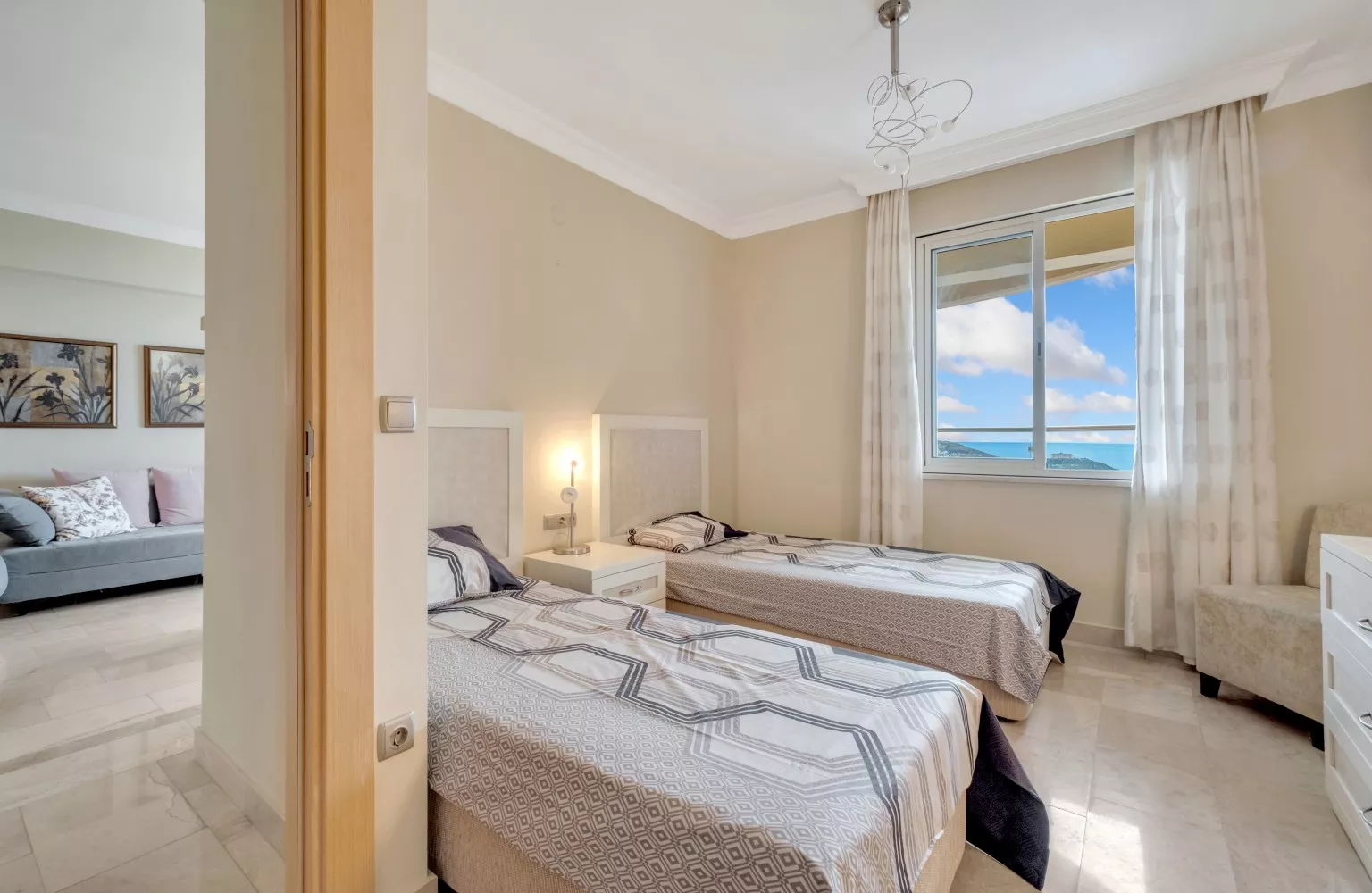 Bu dairedeki iki geniş yatak odası, konforlu ve huzurlu bir uyku sunarken, mutfakla birleşik oturma odası, aile ve arkadaşlarınızla keyifli zamanlar geçirmeniz için ideal bir ortam yaratır. Ayrıca, geniş balkondan gün batımının tadını çıkarabilir, doğanın ve denizin sakinleştirici etkisini hissedebilirsiniz.