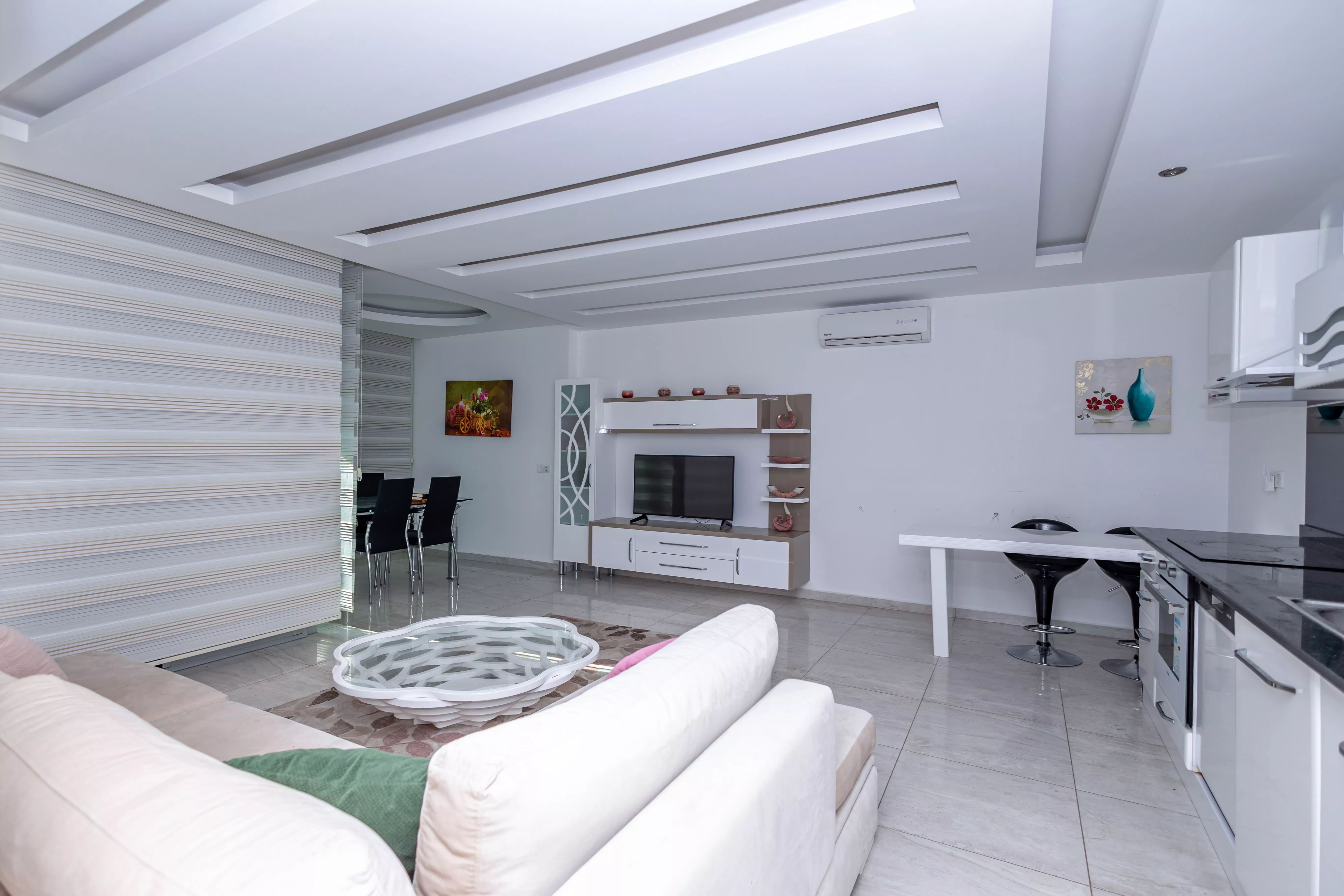 Bu eşsiz daire, modern yaşamın tüm konforunu sunarken, muhteşem deniz manzarasıyla huzurlu bir ortam sağlar.