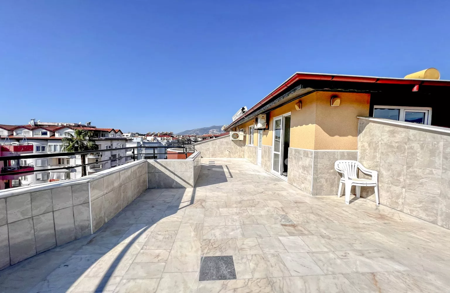Daire, 4 katlı bir binanın en üst katında (4.kat) yer almakta olup, balkonlar sayesinde şehrin manzarasını izleme imkanı sunmaktadır. Açık havuz, sıcak yaz günlerinde ferahlatıcı bir mola vermeniz için idealdir.