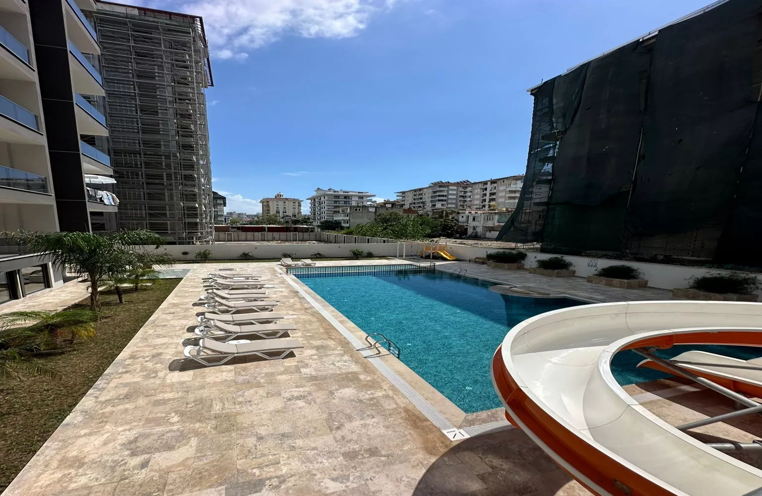 Mahmutlar’daki bu daire, site içerisindeki zengin sosyal olanaklarla öne çıkıyor. Açık havuz, sıcak yaz günlerinde serinlemek için mükemmel bir fırsat sunarken, sauna ve buhar odası gibi dinlenme alanları ile günün yorgunluğunu atabileceğiniz keyifli anlar sizi bekliyor. Ayrıca, sağlığınızı korumak için fitness salonu ve çocuklarınızın güvenle oyun oynayabileceği çocuk oyun alanı da mevcuttur.