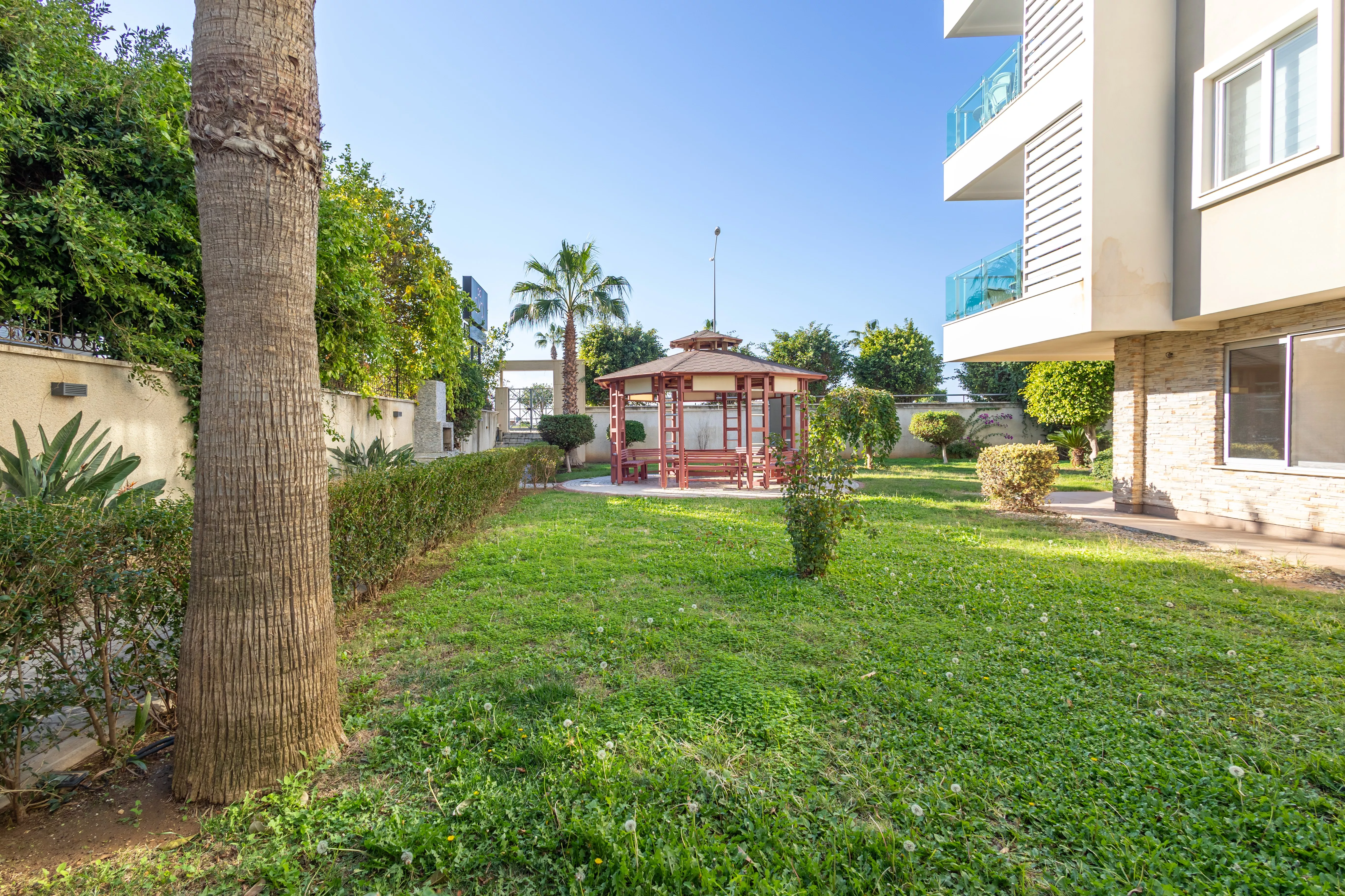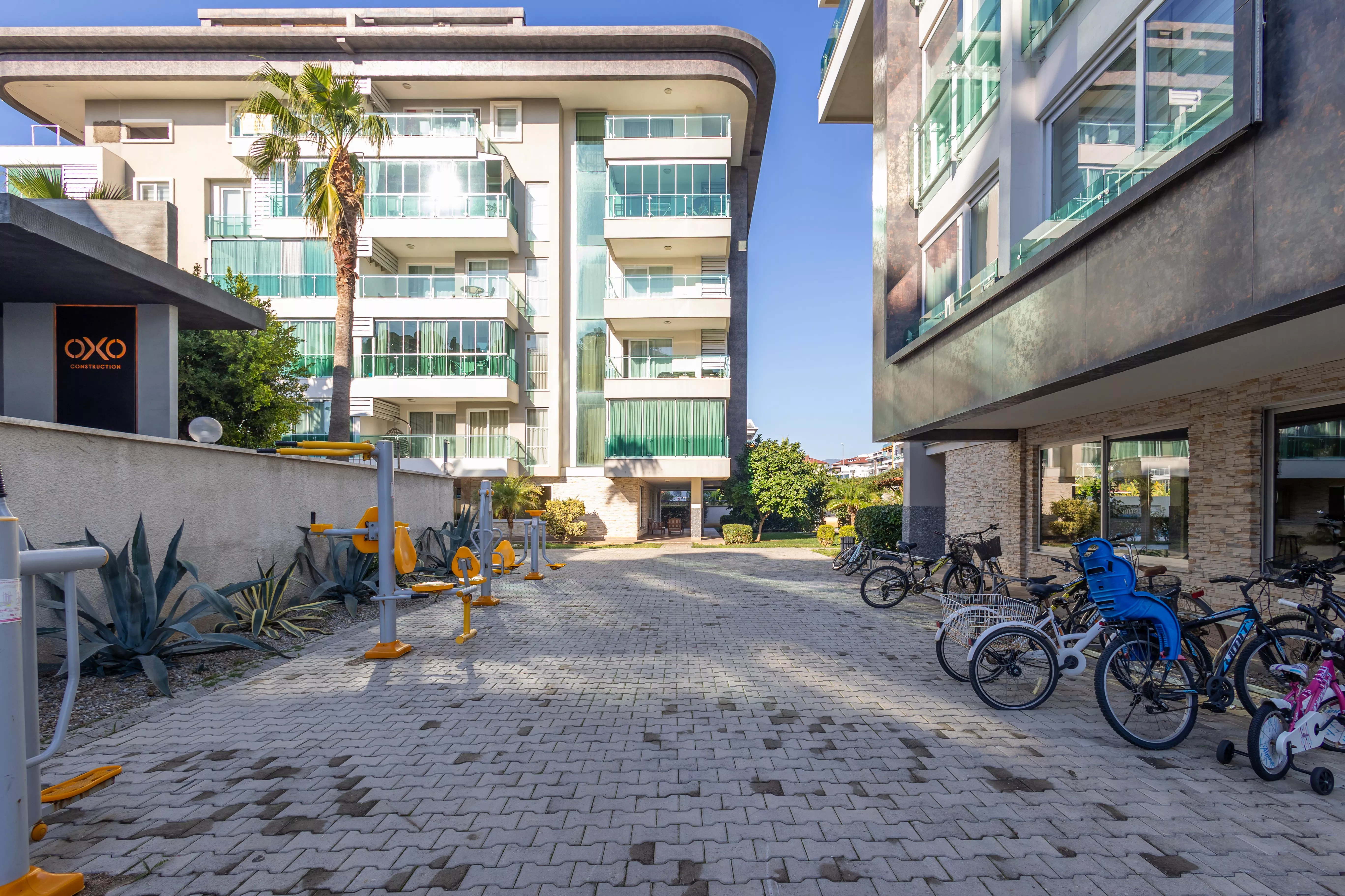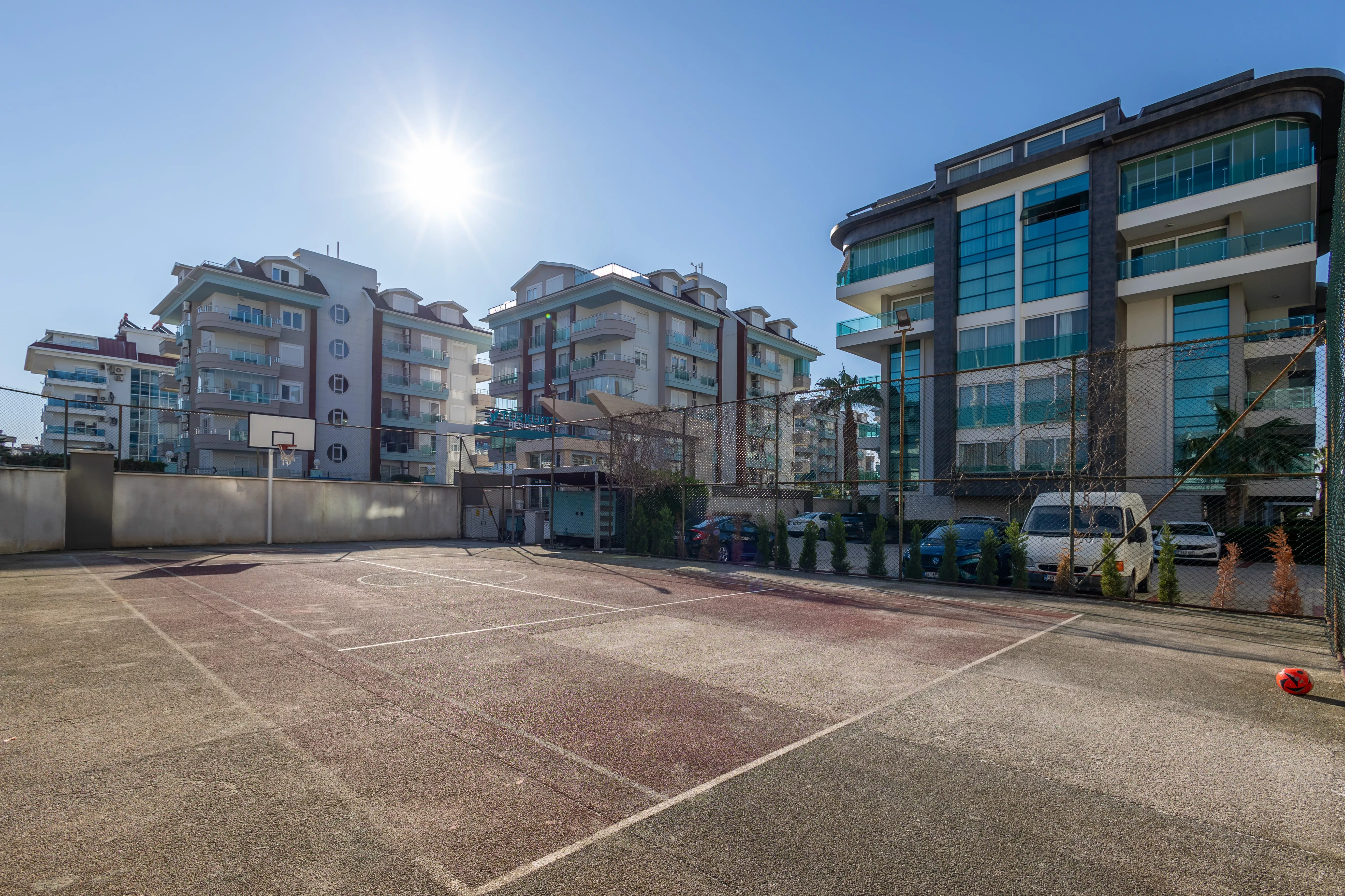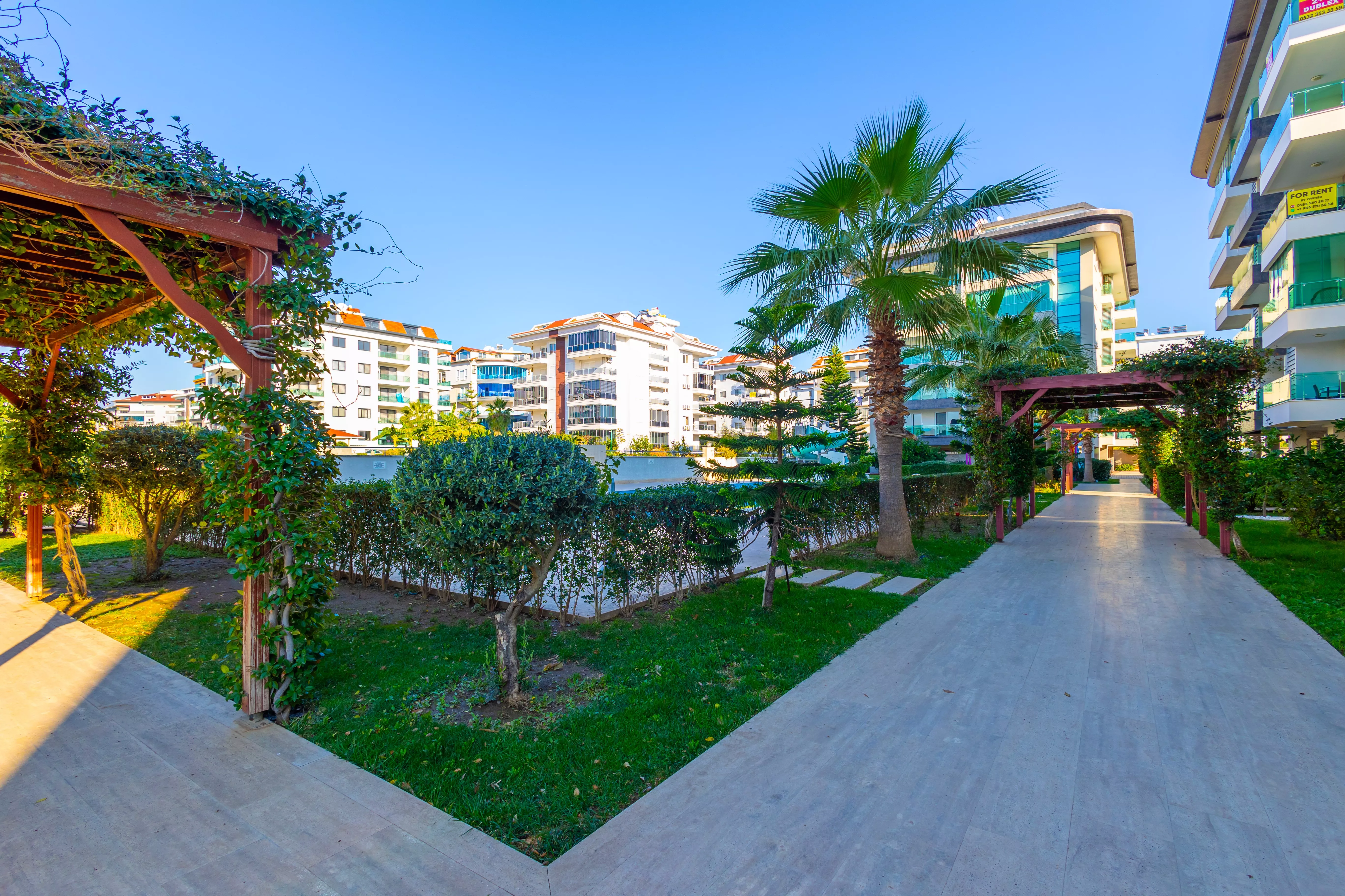Bu daire, bulunduğu sitede sunulan birçok ayrıcalıkla yaşam standardınızı yükseltmektedir. Açık ve kapalı havuz seçenekleri, her mevsim suyun tadını çıkarma imkânı sağlarken, sauna, hamam ve buhar odası gibi olanaklar tatilinizi beş yıldızlı bir deneyime dönüştürür. Fitness salonu, formunuzu korumanıza yardımcı olurken basketbol sahası ve çocuk parkı ailece keyifli vakit geçirmenizi sağlar. Aquapark, yaz aylarını eğlenceye dönüştürürken, jeneratör ve asansör gibi altyapı özellikleri ise günlük yaşamınızı kolaylaştırır. Aracınızı güvenle park edebileceğiniz otopark da ekstra bir konfor sunmaktadır.