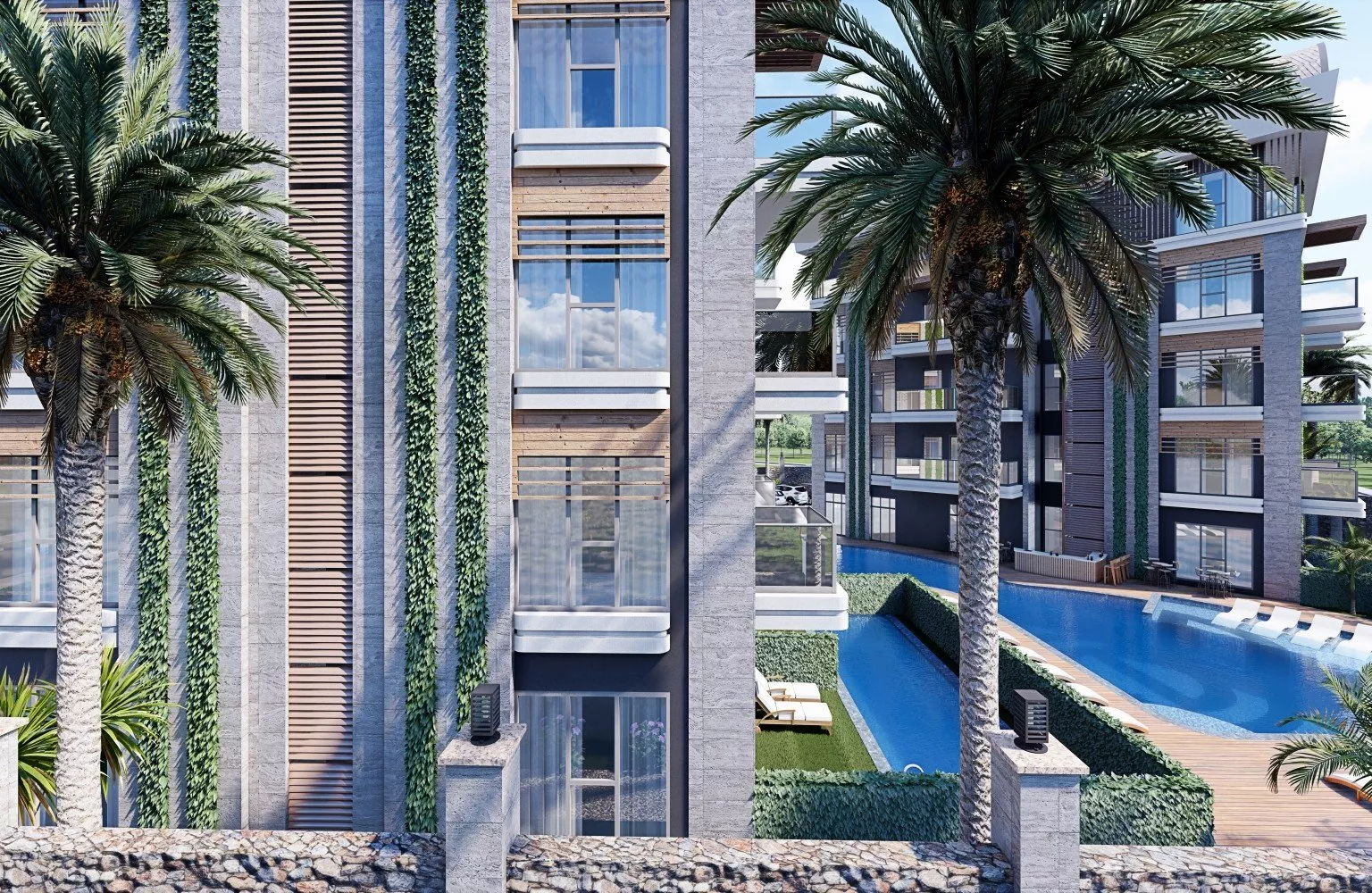 Toplam 36 daireye sahip 2 binadan oluşacak olan  konut kompleksi, denizden 2,5 km uzaklıktadır ve kafeler, dükkanlar, restoranlar, süpermarketlere, rahat bir konaklama için ihtiyacınız olan her yere yürüme mesafesindedir.