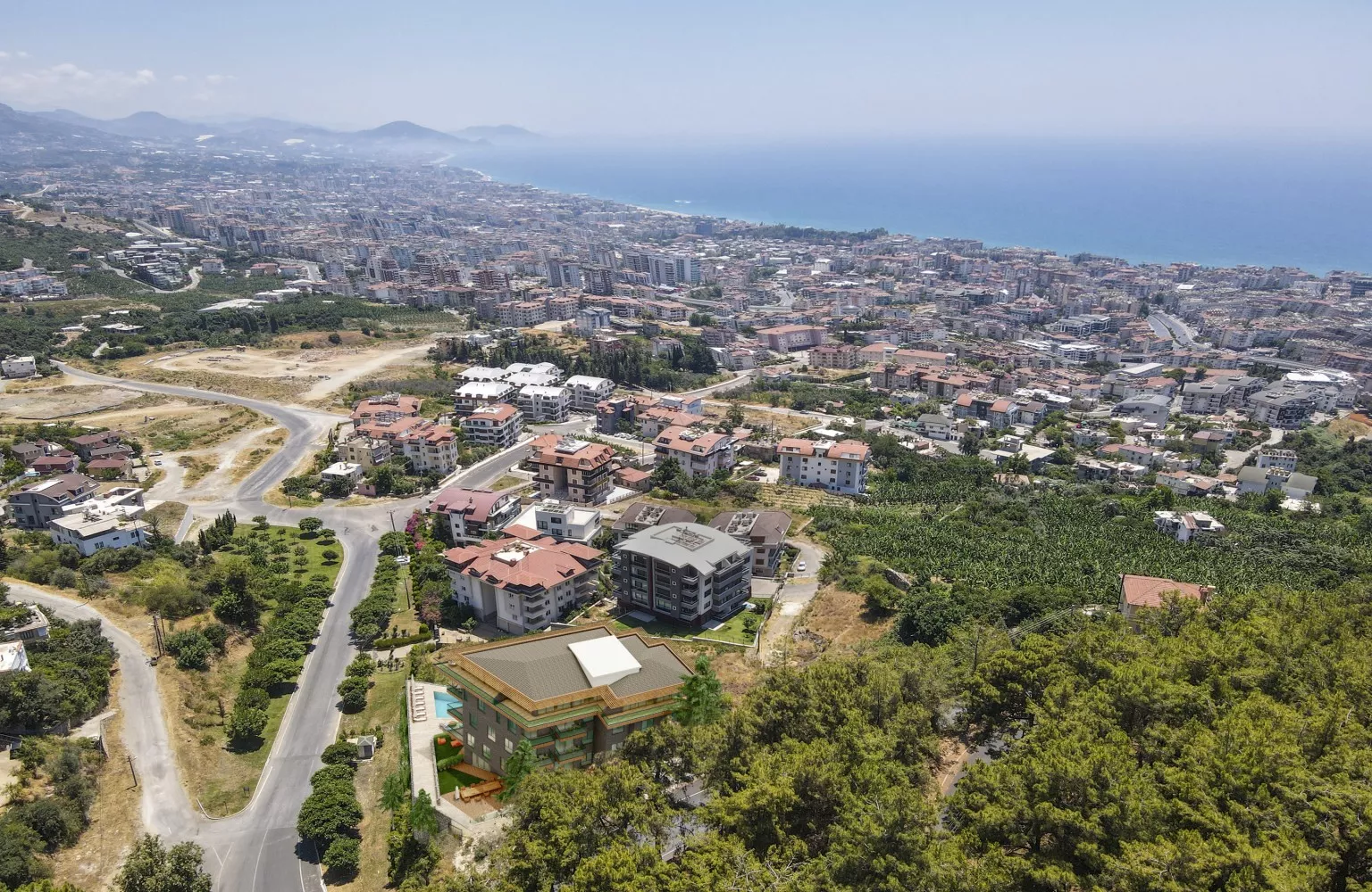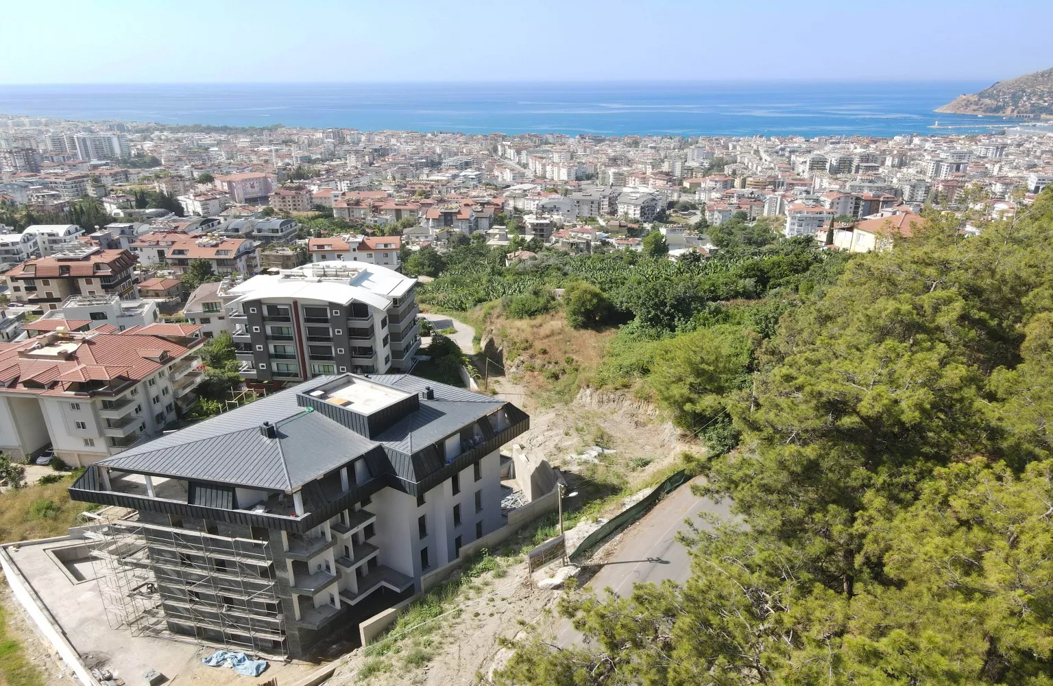Alanya'nın Hasbahçe mahallesinde inşaat halinde satılık lüks daireler.