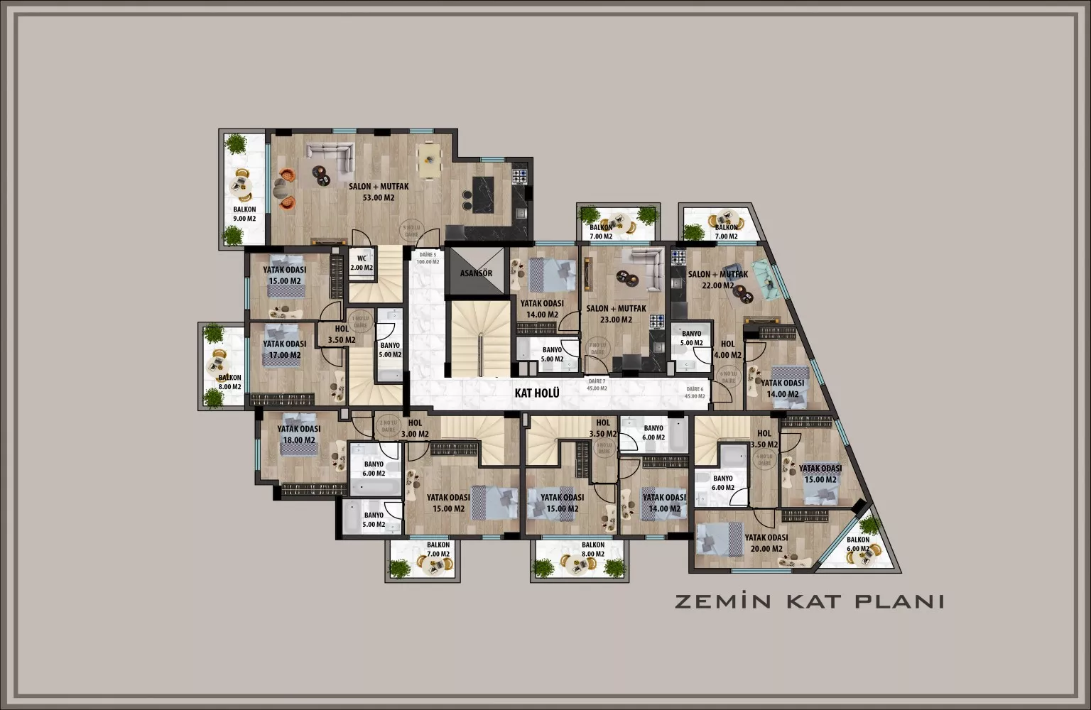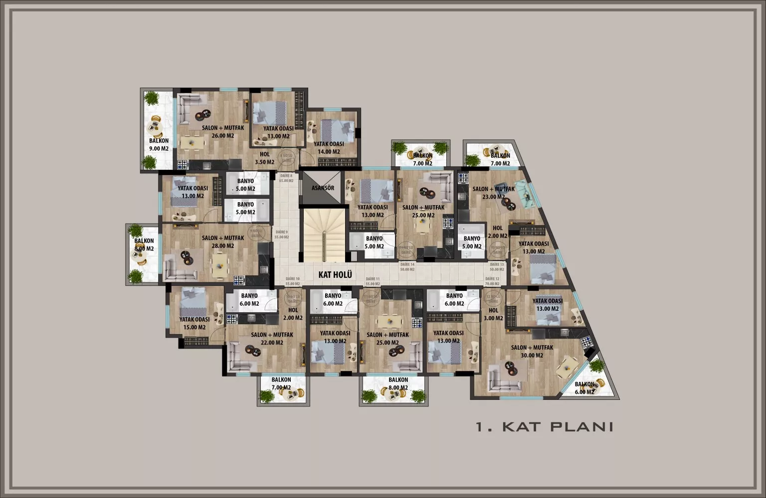 1+1 daireler 50 m²