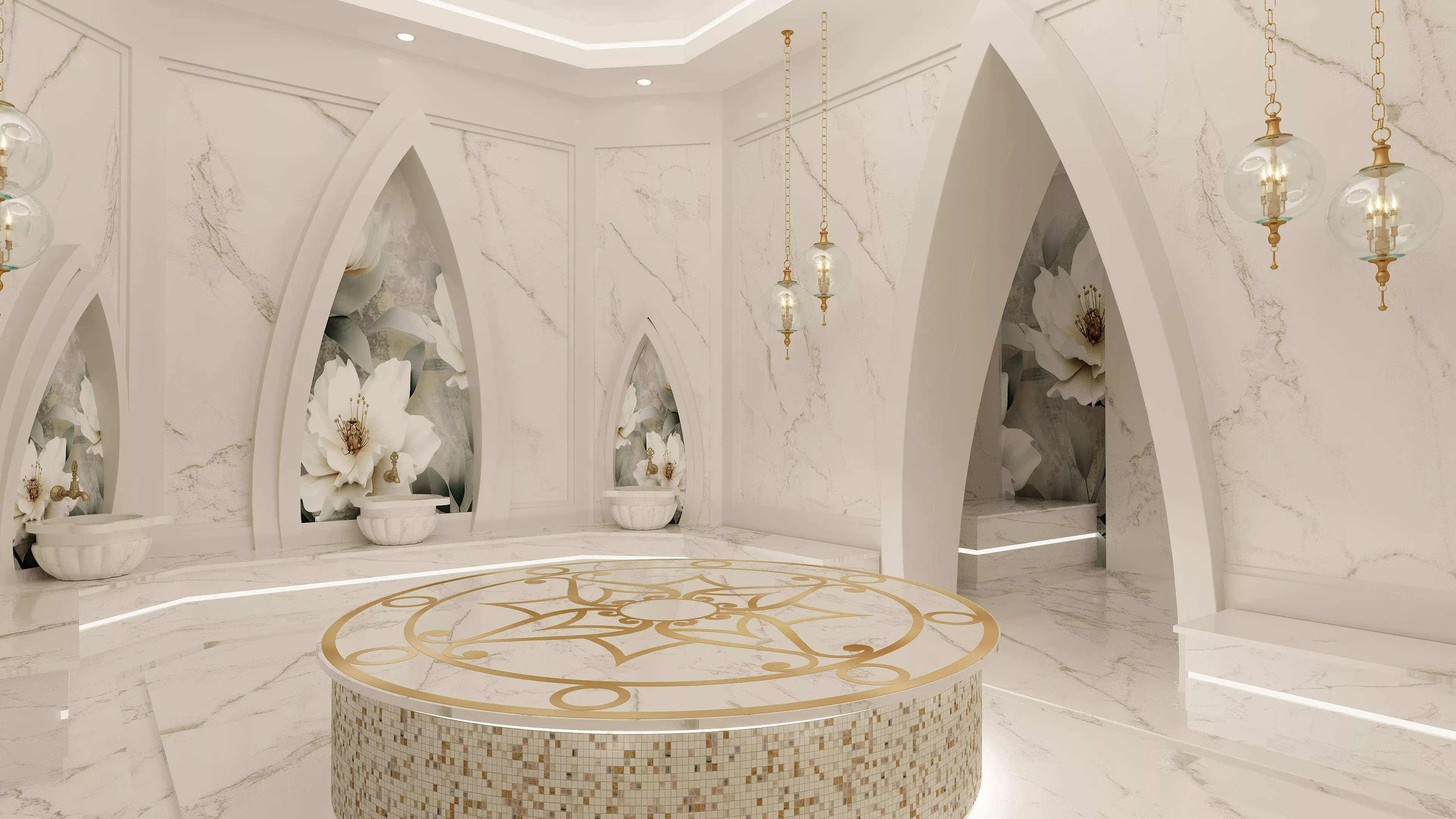 • Hamam, sauna, spa, buhar odası ve şok duş