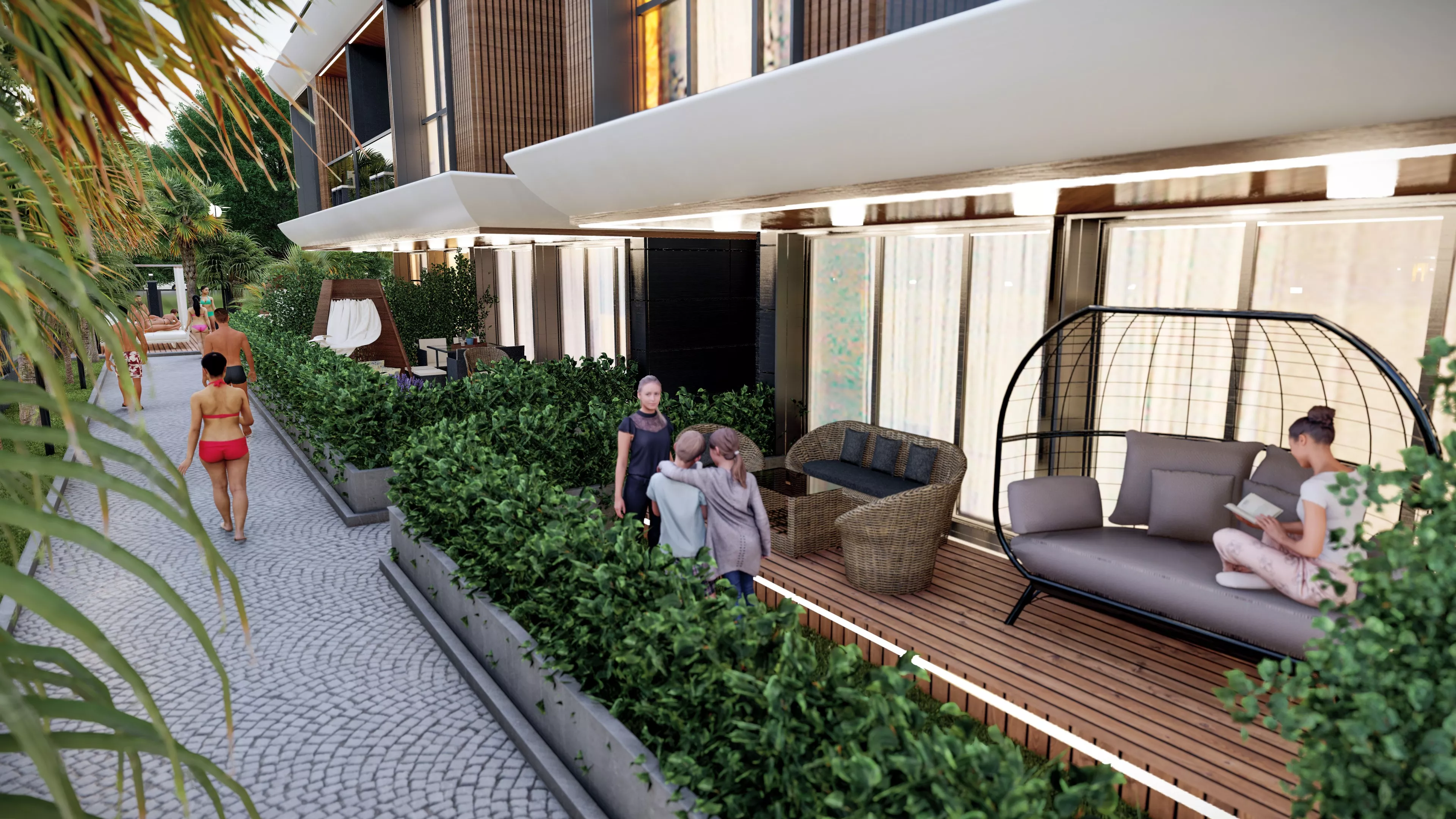 Konforlu yaşam alanları: Bahçeli ve geniş kullanım alanına sahip modern daireler.
