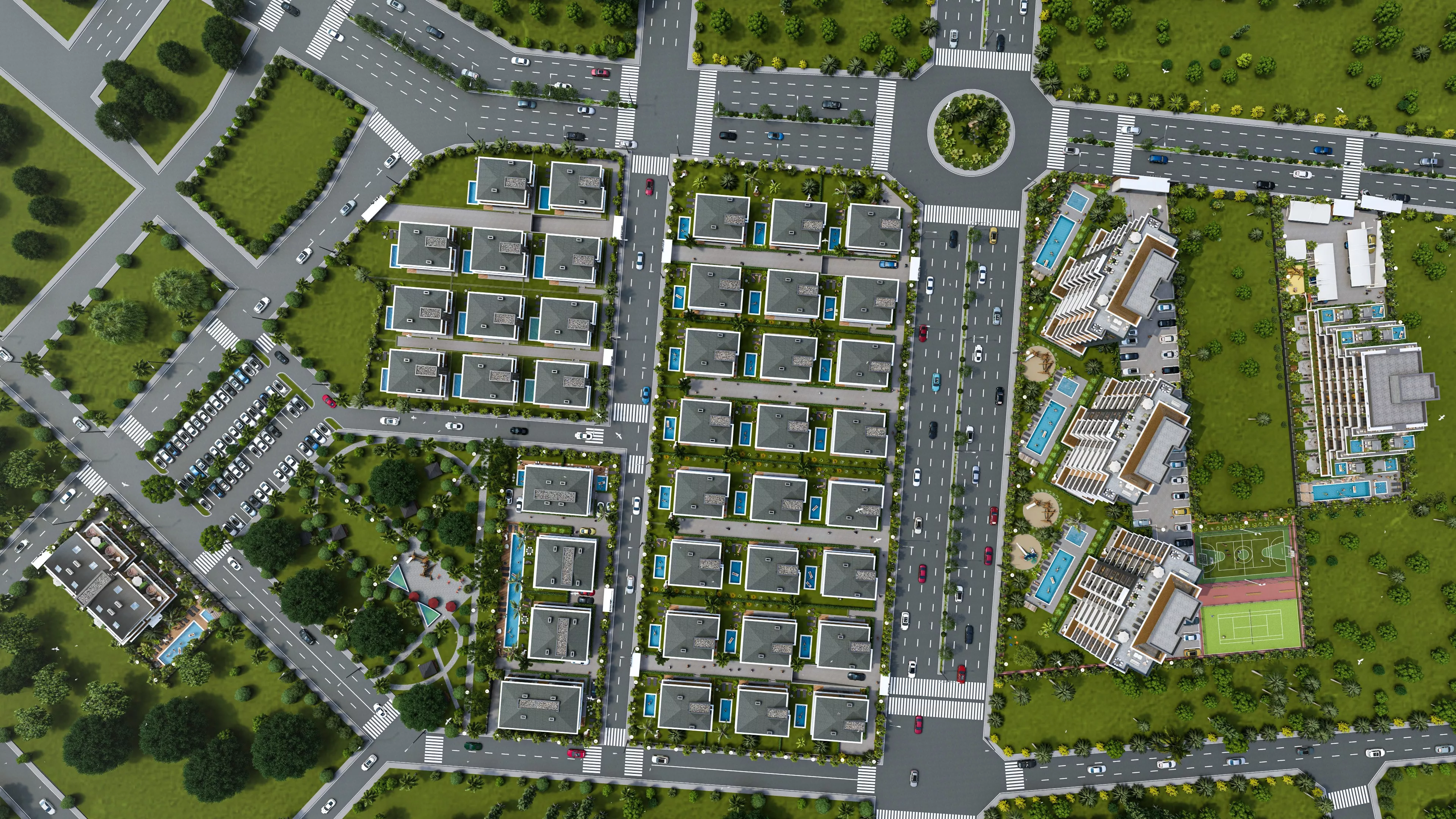 Proje aşamasındaki daire ve villalar, modern mimari ve yüksek kaliteli malzemelerle inşa edilmektedir. Akıllı ev sistemleri, geniş balkonlar, modern mutfaklar ve ferah yaşam alanları, konforlu bir yaşam için tasarlanmıştır. Villalar, özel havuzlar, geniş bahçeler ve panoramik manzaralarla donatılmıştır. Ayrıca, site içi olanaklar arasında yüzme havuzları, spor salonları, çocuk oyun alanları, hamam, sauna ve çeşitli sosyal alanlar bulunmaktadır.