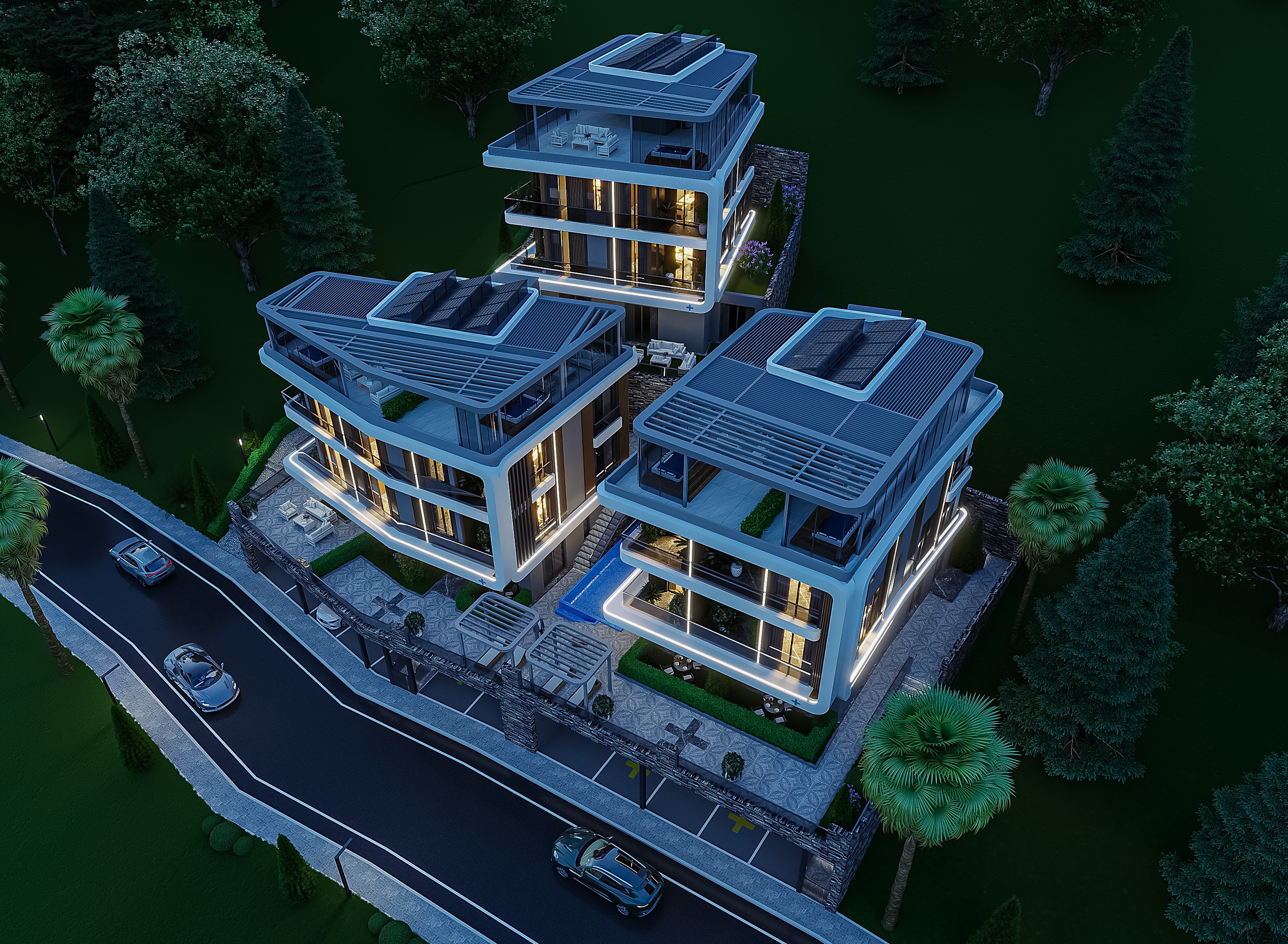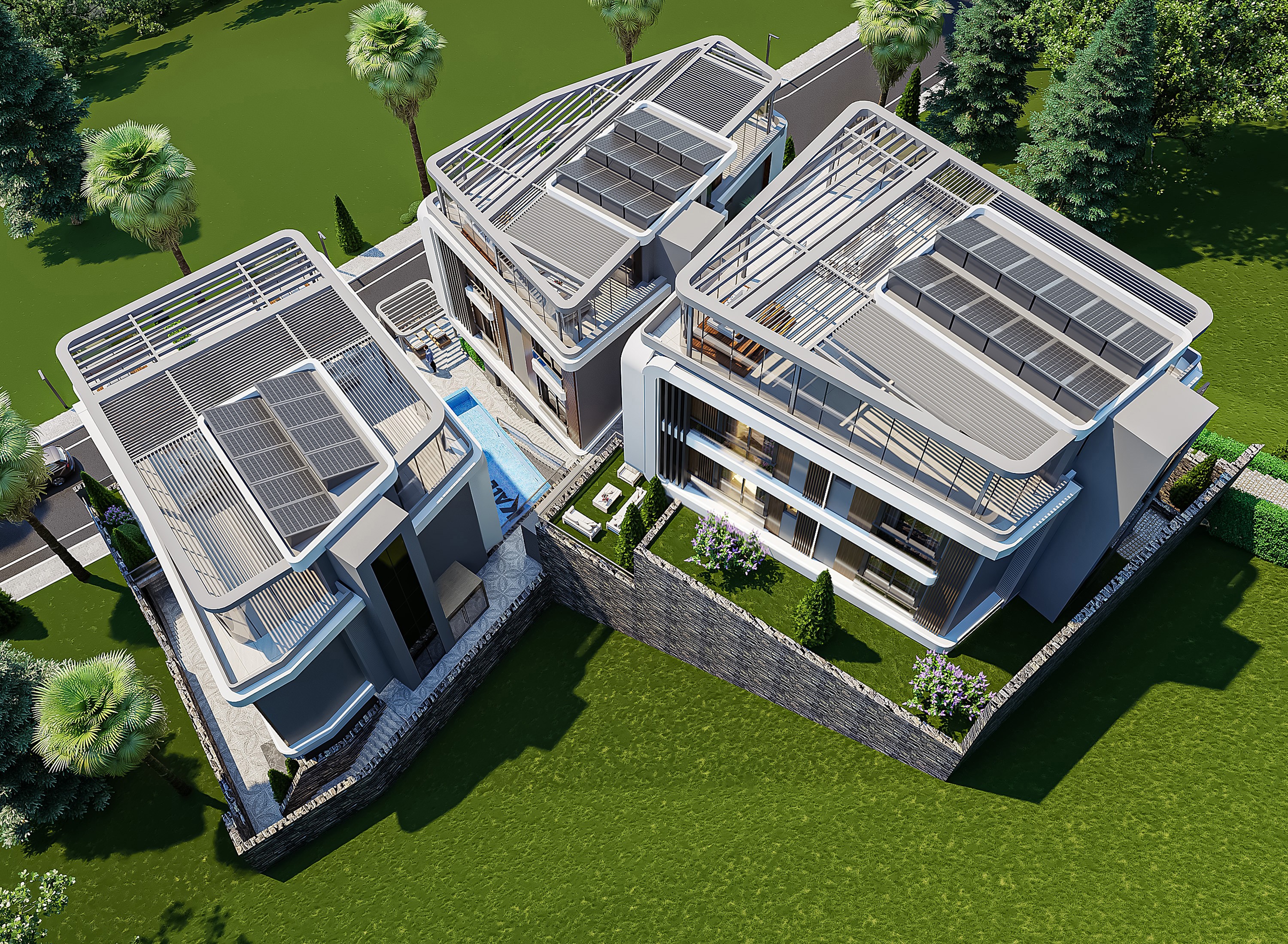 Proje aşamasındaki daire ve villalar, modern mimari ve yüksek kaliteli malzemelerle inşa edilmektedir. Akıllı ev sistemleri, geniş balkonlar, modern mutfaklar ve ferah yaşam alanları, konforlu bir yaşam için tasarlanmıştır. Villalar, özel havuzlar, geniş bahçeler ve panoramik manzaralarla donatılmıştır. Ayrıca, site içi olanaklar arasında yüzme havuzları, spor salonları, çocuk oyun alanları, hamam, sauna ve çeşitli sosyal alanlar bulunmaktadır.