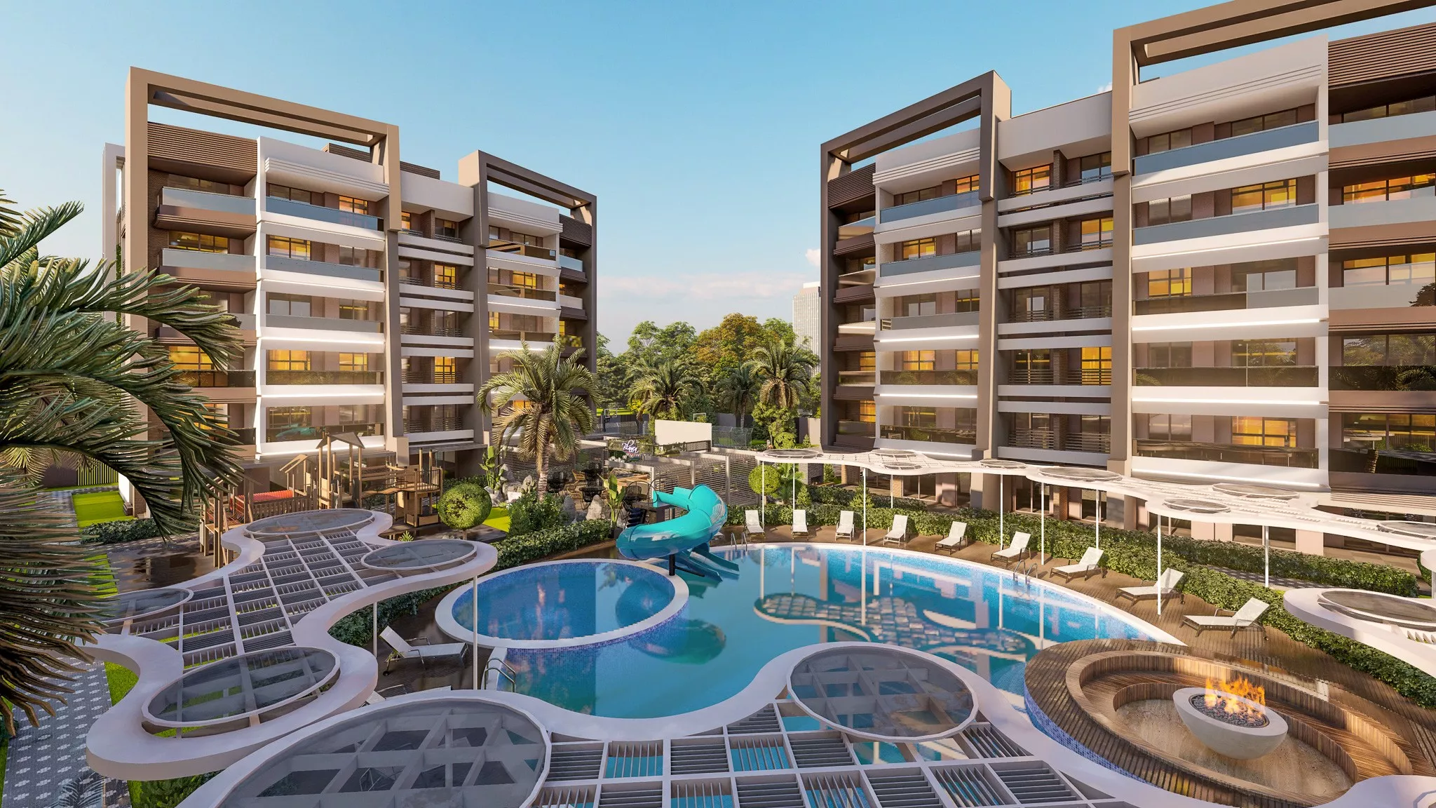 • Çocuk Oyun Alanları: Çocukların güvenle oynayabileceği oyun alanları mevcuttur.