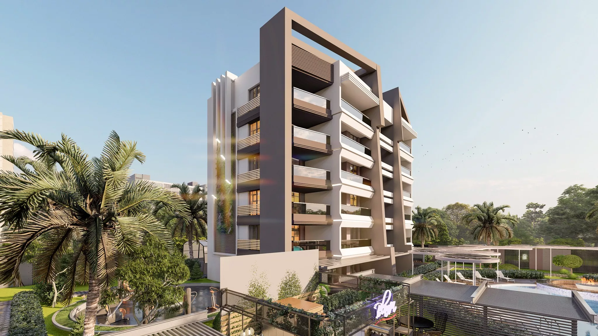 Proje aşamasındaki daire ve villalar, modern mimari ve yüksek kaliteli malzemelerle inşa edilmektedir. Akıllı ev sistemleri, geniş balkonlar, modern mutfaklar ve ferah yaşam alanları, konforlu bir yaşam için tasarlanmıştır. Villalar, özel havuzlar, geniş bahçeler ve panoramik manzaralarla donatılmıştır. Ayrıca, site içi olanaklar arasında yüzme havuzları, spor salonları, çocuk oyun alanları, hamam, sauna ve çeşitli sosyal alanlar bulunmaktadır.