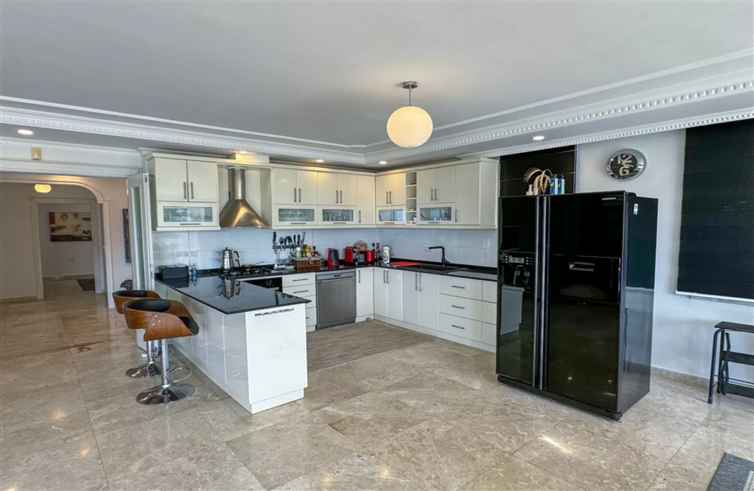 Alanya’nın en prestijli bölgelerinden biri olan Tepe’de yer alan bu 4+2 villa, modern yaşamın tüm ayrıcalıklarını sunuyor. Tamamen eşyalı olan villa, toplamda 350 m² yaşam alanı ile hem geniş aileler hem de konforlu bir yaşam arayanlar için ideal.