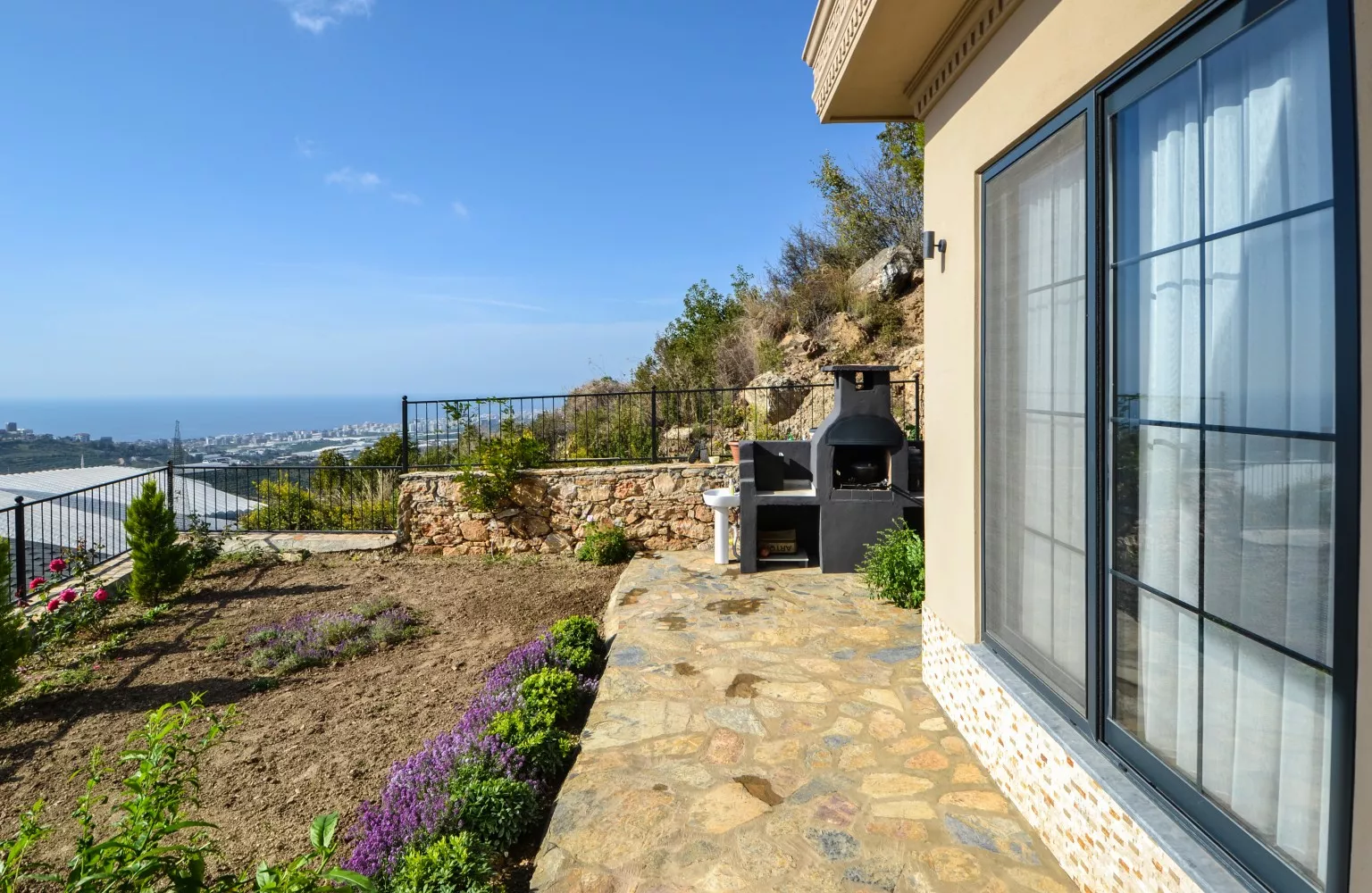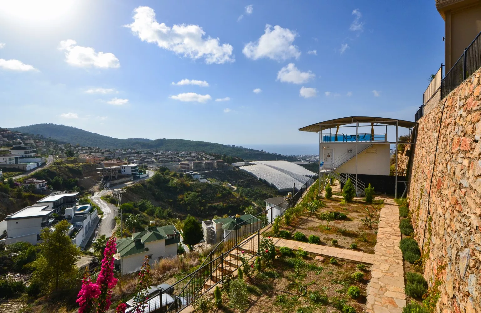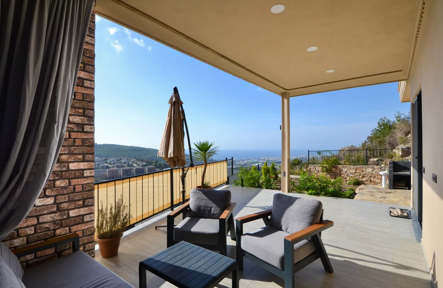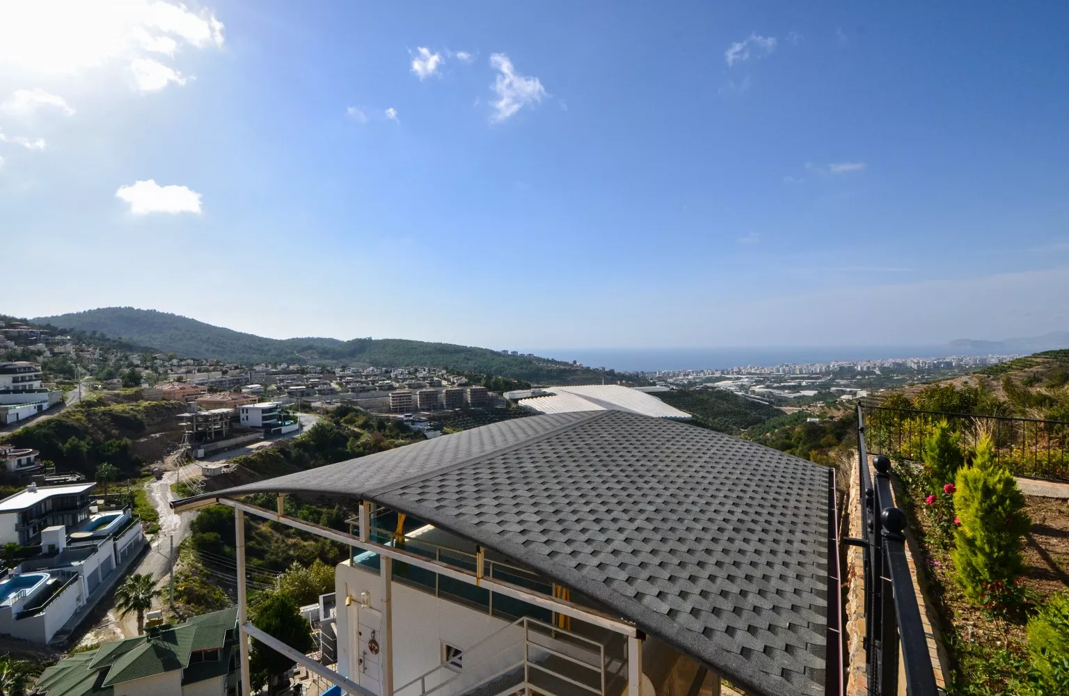 Satılık olan villa deniz, dağ ve Alanya şehir manzaralıdır.