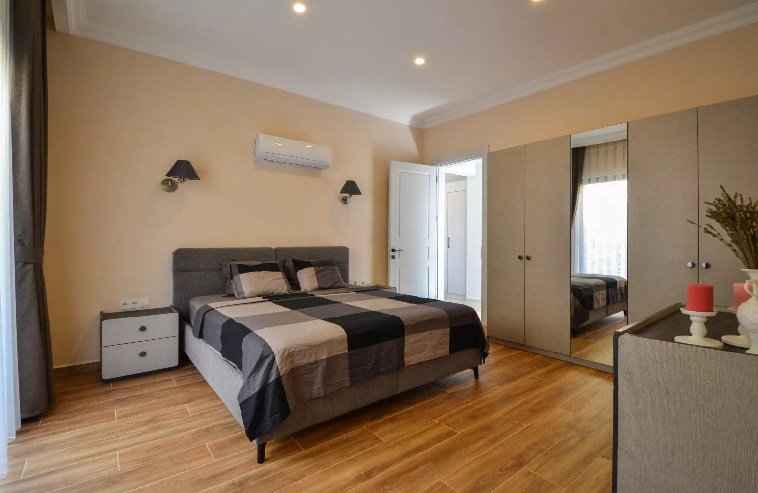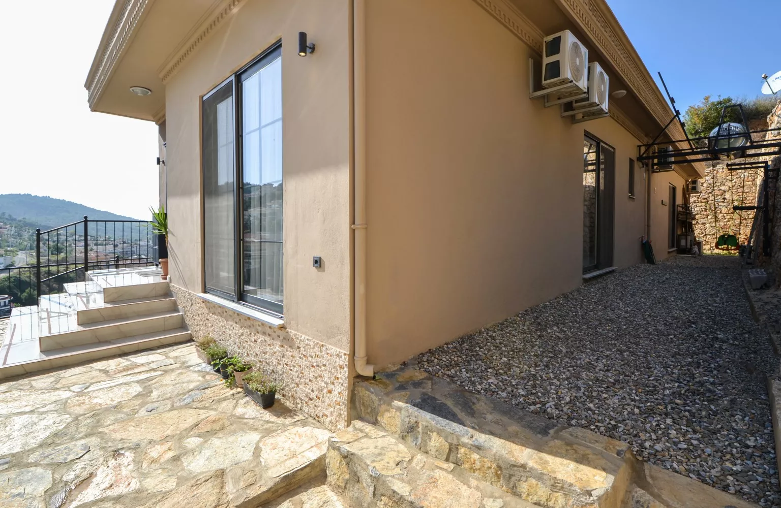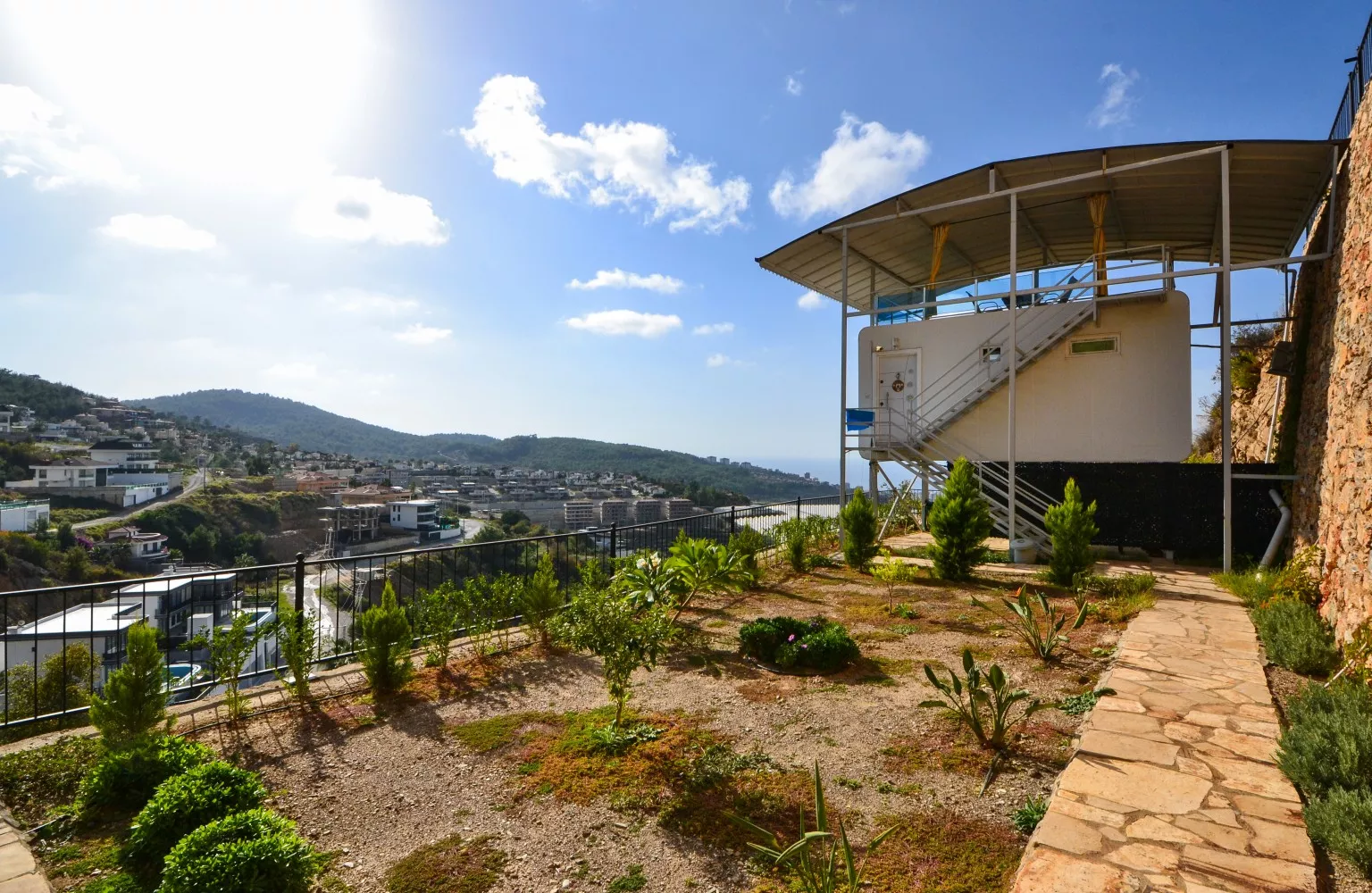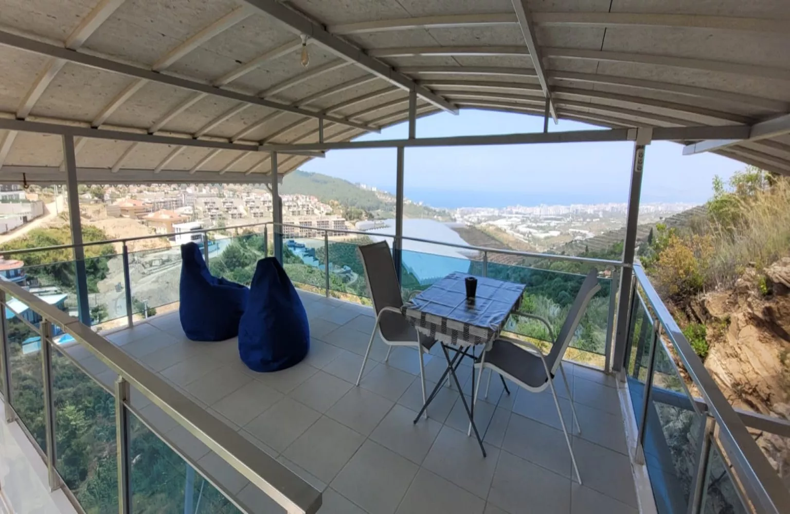 Satılık olan villa deniz, dağ ve Alanya şehir manzaralıdır.