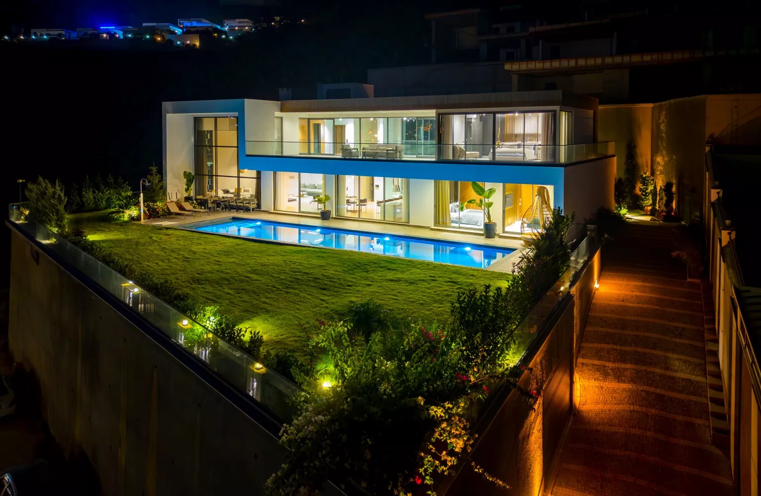 Kiwi Sunset II'de yaşamın her anı bir ayrıcalıktır. 1.102m² arsa içinde yer alan villanın 75 m² büyüklüğündeki havuzunda serinleyebilir, geniş bahçesinde doğanın tadını çıkarabilirsiniz. Bu villa, asansör, otopark ve şömine gibi lüks özelliklerle donatılmıştır. Akıllı ev sistemi ile evinizi kolayca kontrol edebilir, jeneratör ile enerji kesintilerinden etkilenmezsiniz. Tavan klima sistemiyle her mevsim ideal ısıyı sağlayabilirsiniz. Ayrıca, gürültü, nem ve ısı izolasyonu sayesinde huzurlu ve konforlu bir yaşam sunar. Konforlu ve güvenli bir yaşam arayanlar için bu villa mükemmel bir seçenektir.