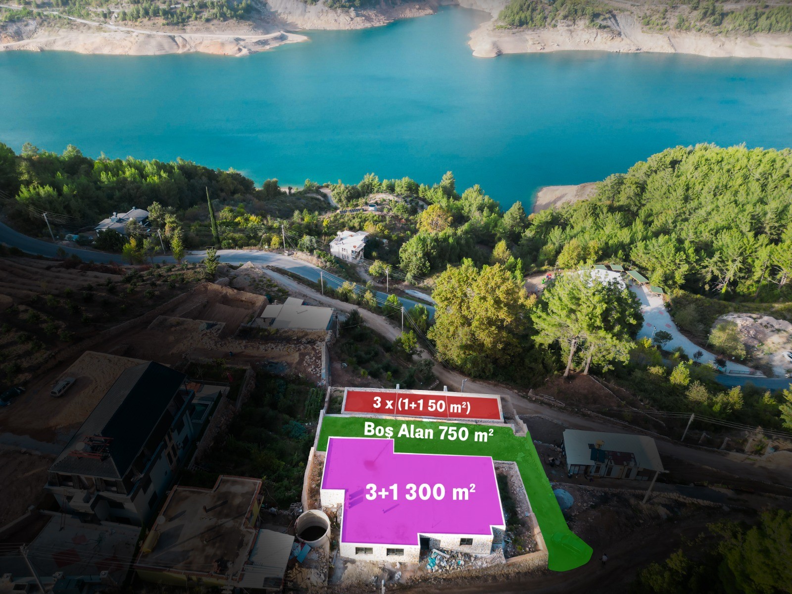 • 2. Sıra: 750 m² boş alan (bahçe, havuz veya bungalov yapımına uygun)