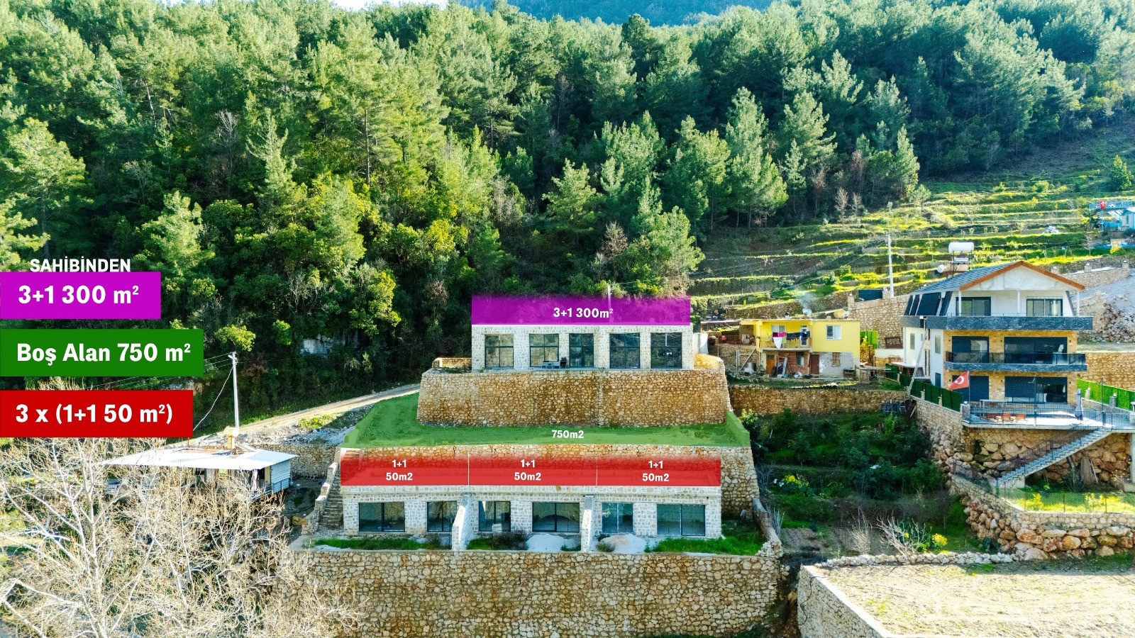 • 1. Sıra: Brüt 300 m², 3+1 taş villa